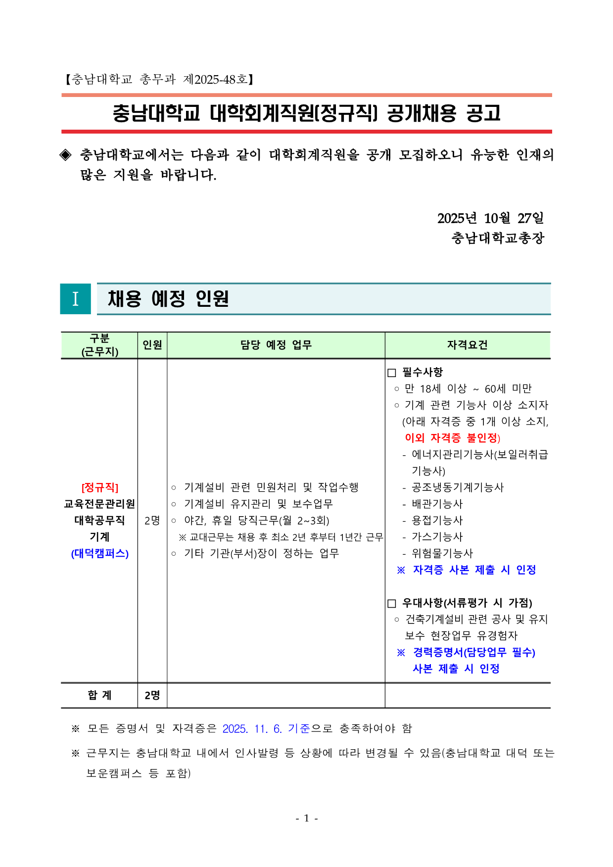 Ãæ³²´ëÇб³ ´ëÇÐȸ°èÁ÷¿ø(Á¤±ÔÁ÷) ä¿ë ¾È³»(Á¦2025-48È£)