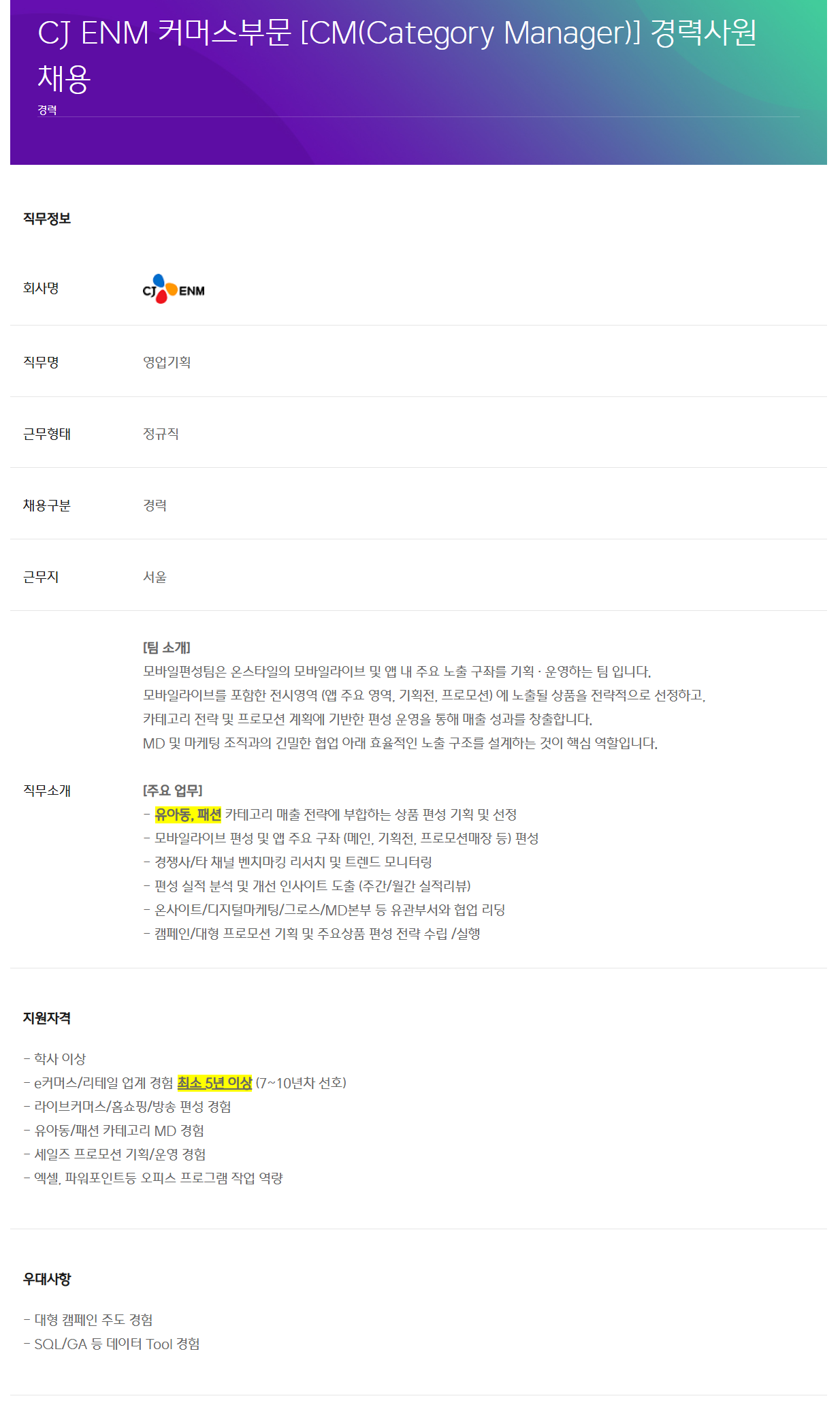 - eÄ¿¸Ó½º/¸®Å×ÀÏ ¾÷°è °æÇè ÃÖ¼Ò 5³â ÀÌ»ó (7~10³âÂ÷ ¼±È£)