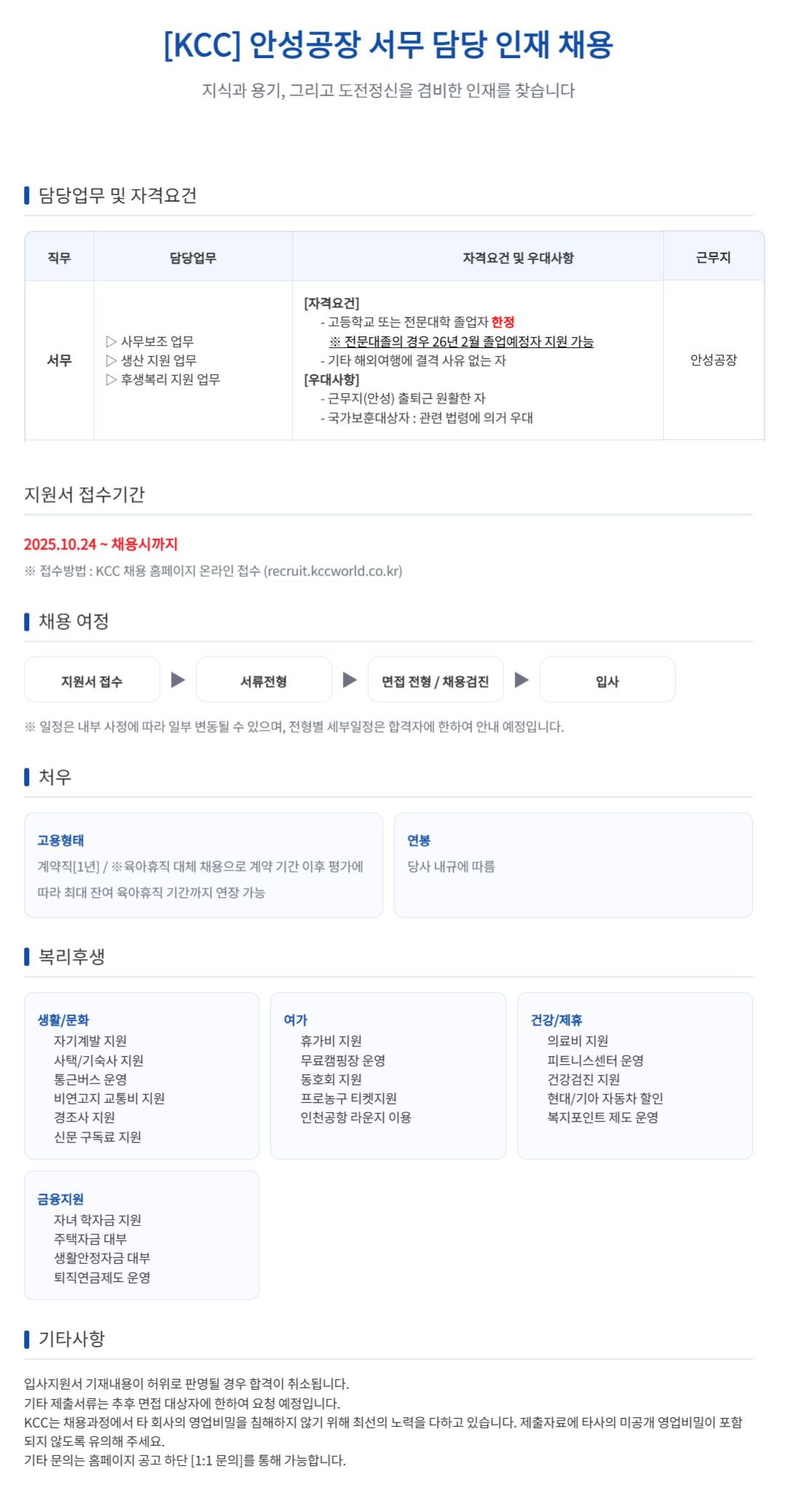 [KCC] ¾È¼º°øÀå ¼¹« ´ã´ç ÀÎÀç ä¿ë