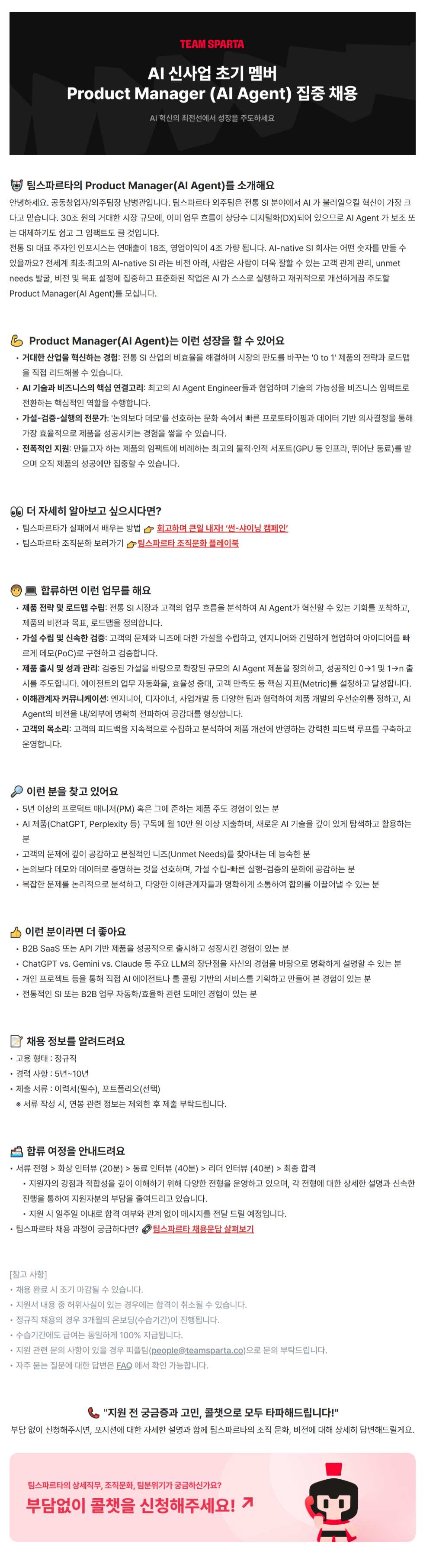 [🚀AI½Å»ç¾÷ ÁýÁßä¿ë🚀] Product Manager (AI Agent)