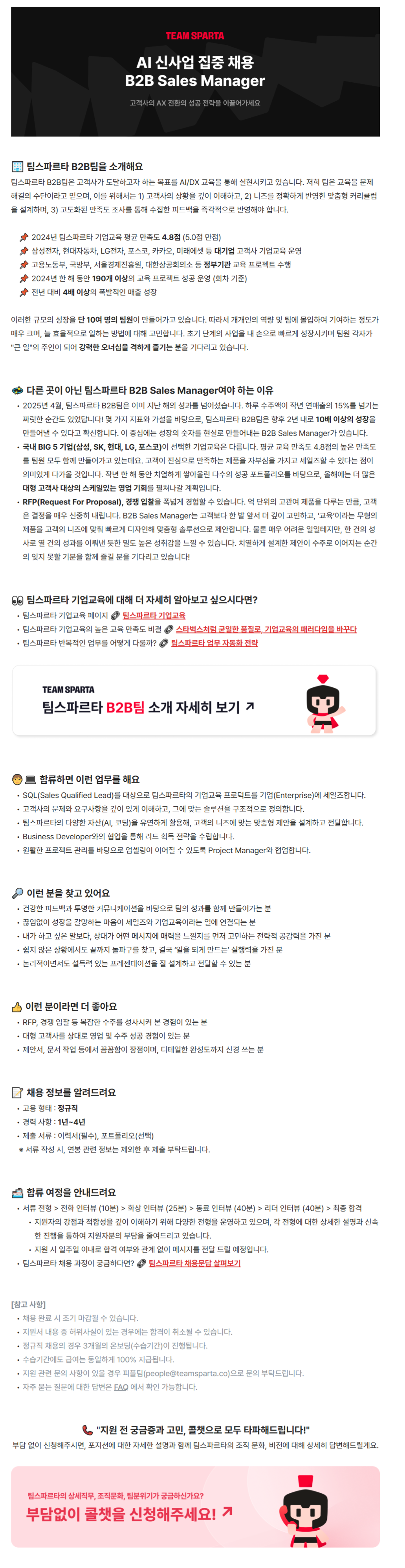 [🚀AI½Å»ç¾÷ ÁýÁßä¿ë🚀] B2B Sales Manager