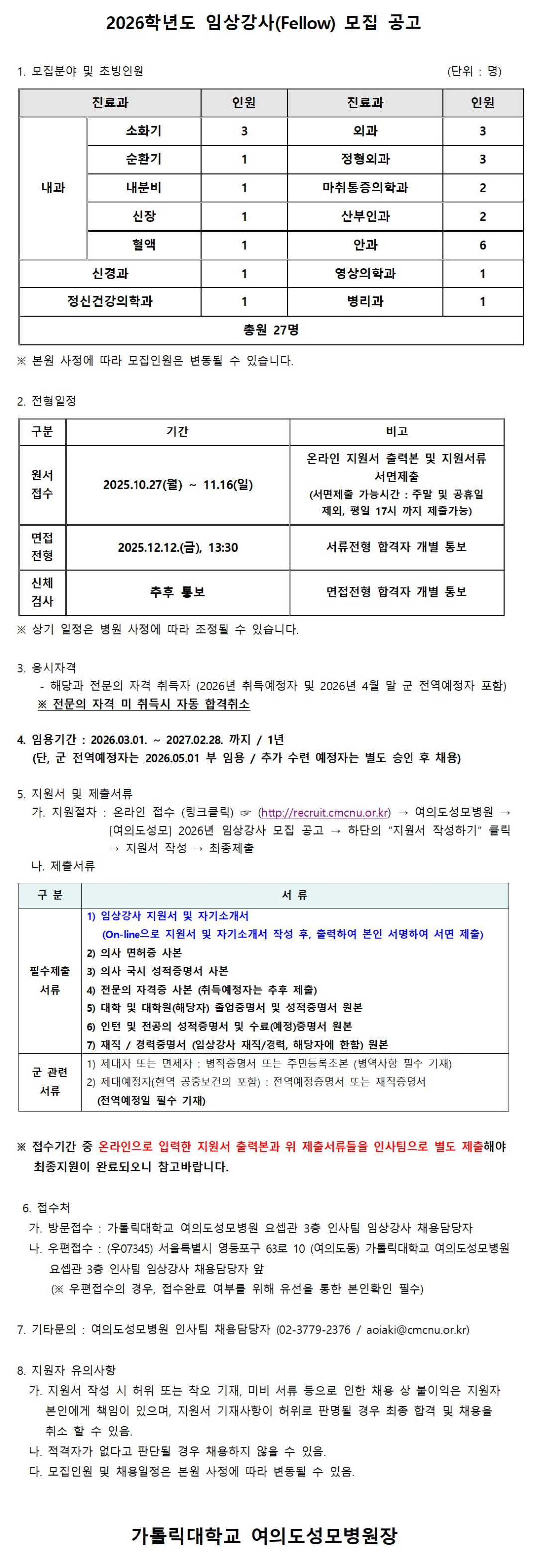 [¿©Àǵµ¼º¸ð] 2026Çг⵵ ÀÓ»ó°»ç ¸ðÁý °ø°í