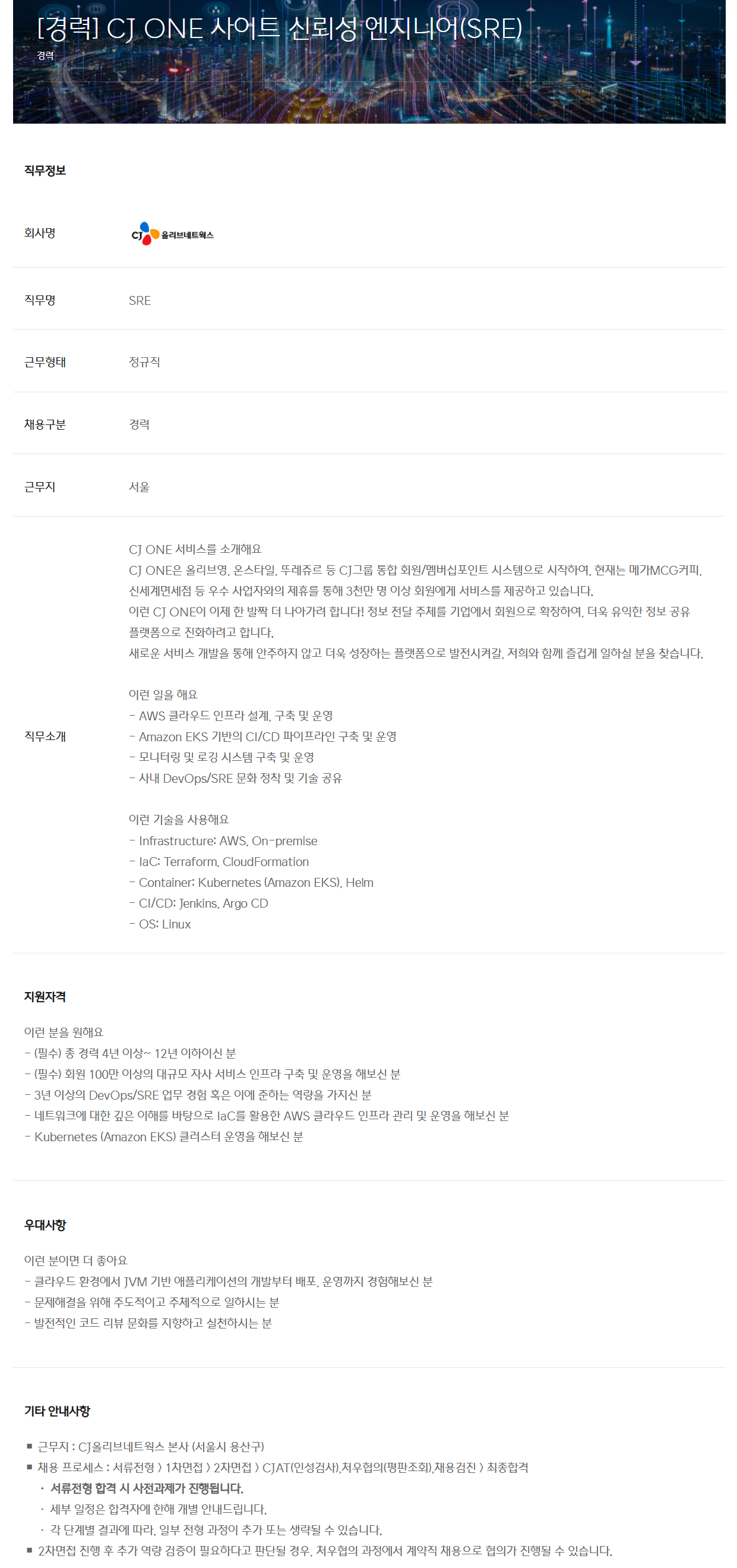 ◼ ±Ù¹«Áö : CJ¿Ã¸®ºê³×Æ®¿÷½º º»»ç (¼¿ï½Ã ¿ë»ê±¸)