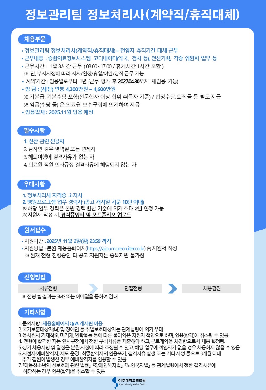 Á¤º¸°ü¸®ÆÀ Á¤º¸Ã³¸®»ç(°è¾àÁ÷/ÈÞÁ÷´ëü)