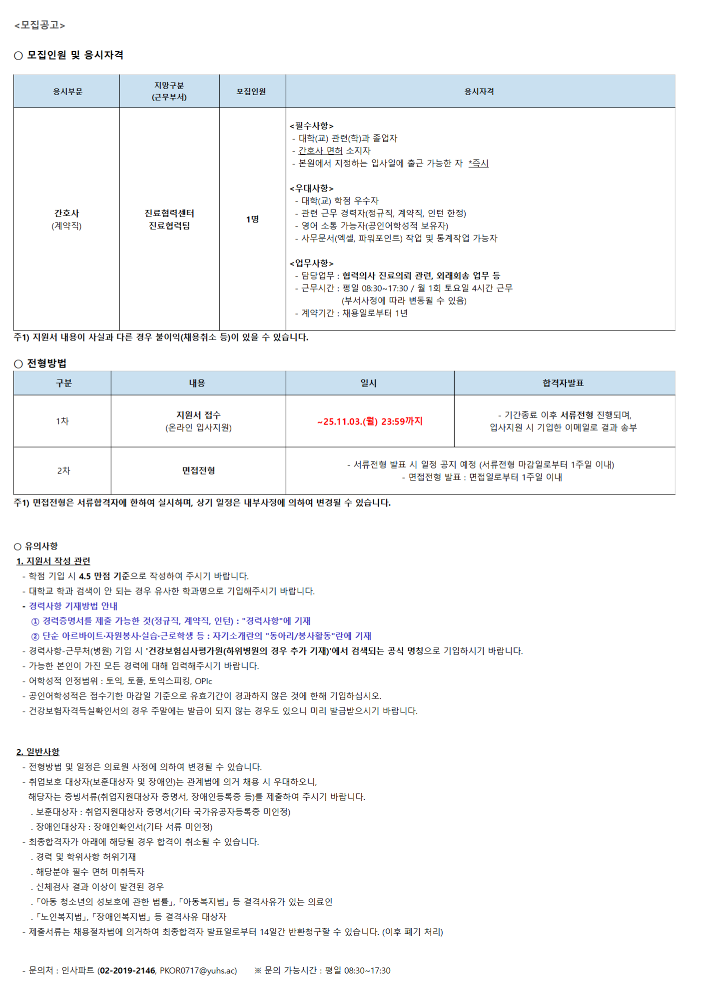 [ÀϹÝ-°³²] °£È£»ç(°è¾àÁ÷) Áø·áÇù·ÂÆÀ 25.11 ¸ðÁý