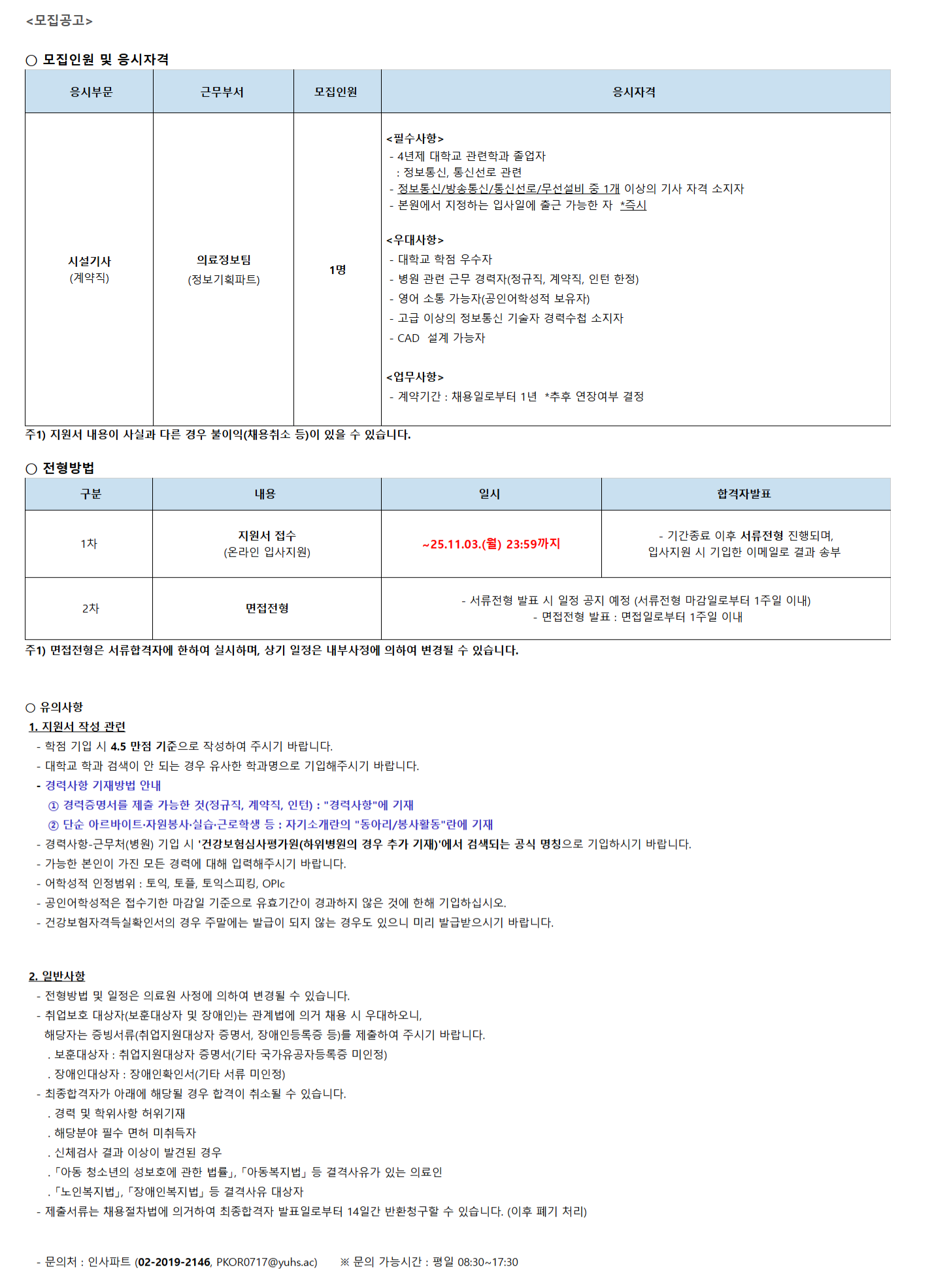 [ÀϹÝ-°³²] ½Ã¼³±â»ç(°è¾àÁ÷) ÀÇ·áÁ¤º¸ÆÀ 25.11 ¸ðÁý