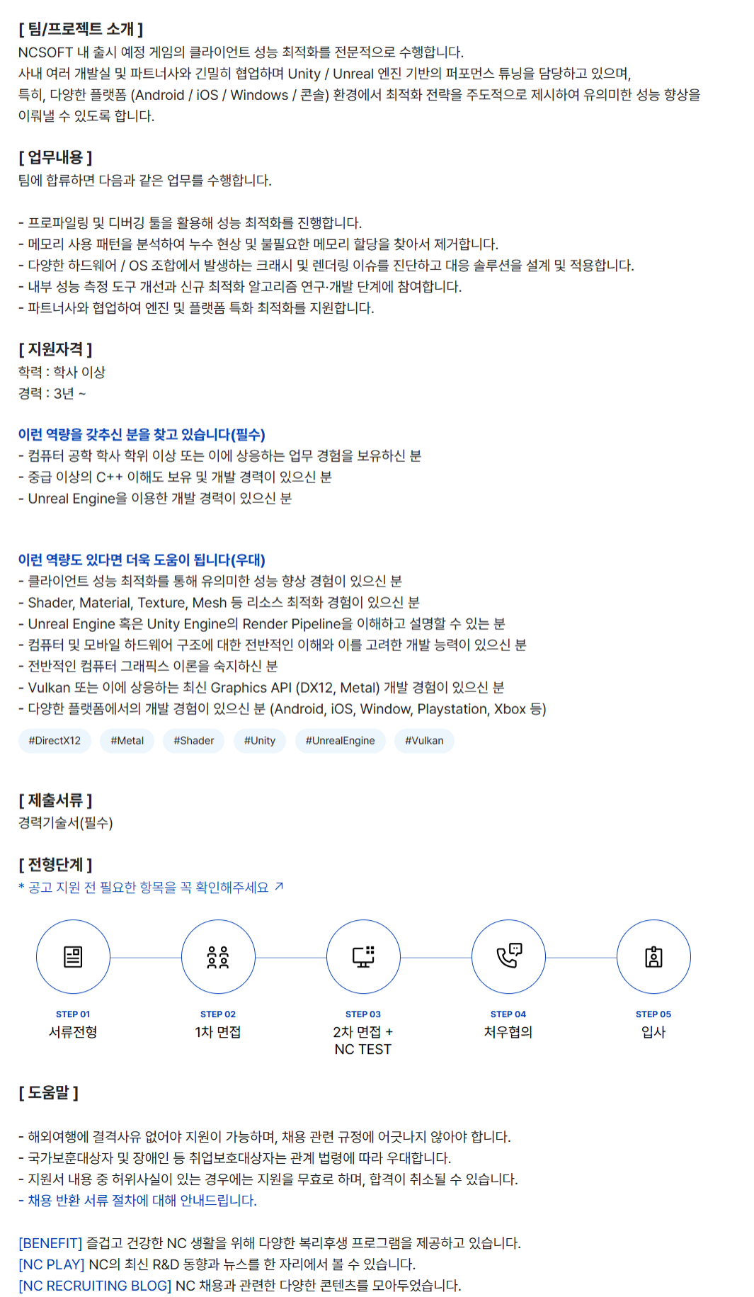 »ç³» ¿©·¯ °³¹ß½Ç ¹× ÆÄÆ®³Ê»ç¿Í ±ä¹ÐÈ÷ Çù¾÷Çϸç Unity / Unreal ¿£Áø ±â¹ÝÀÇ ÆÛÆ÷¸Õ½º Æ©´×À» ´ã´çÇϰí ÀÖÀ¸¸ç,