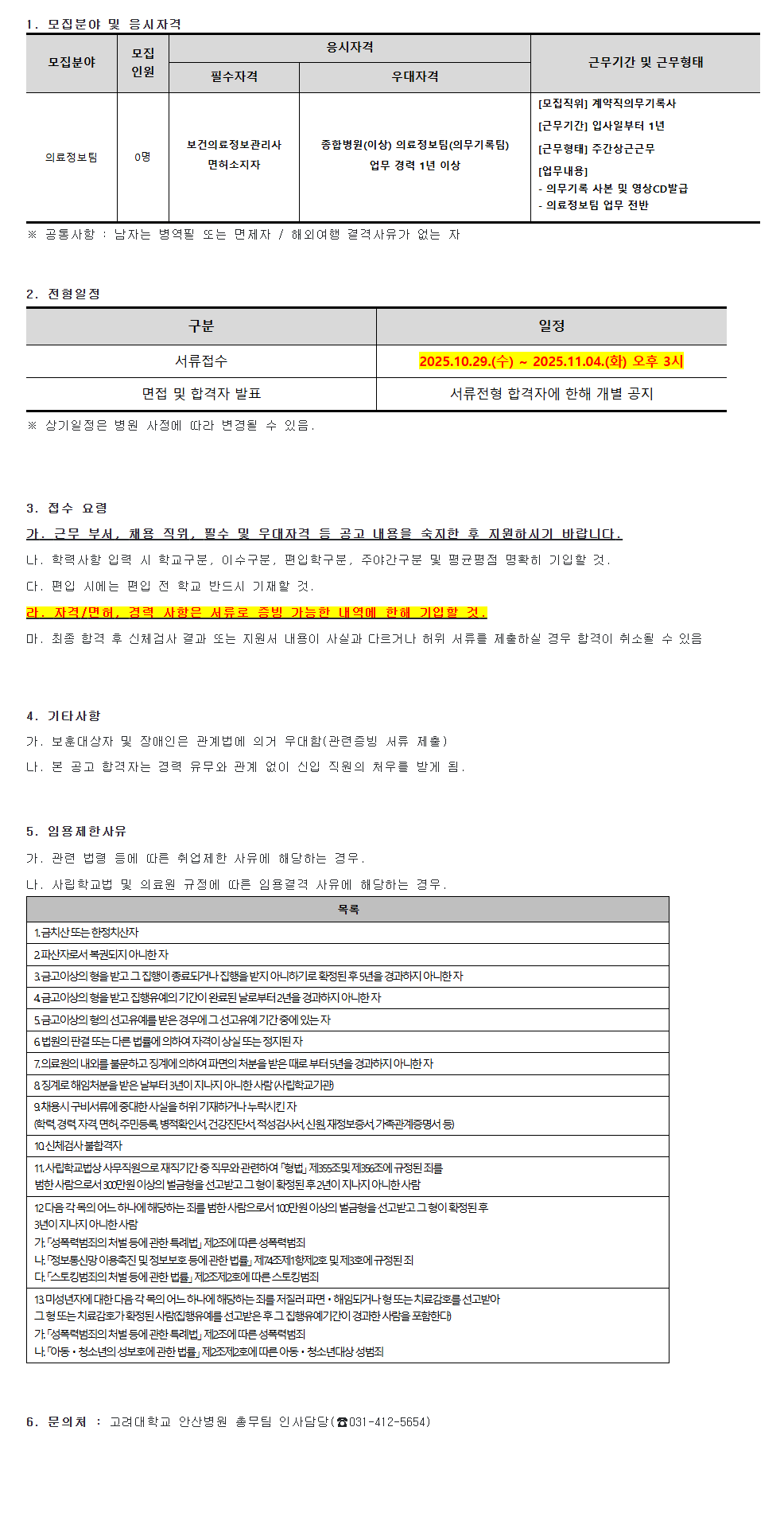 [¾È»êº´¿ø25-163] ÀÇ·áÁ¤º¸ÆÀ °è¾àÁ÷Àǹ«±â·Ï»ç ¸ðÁý