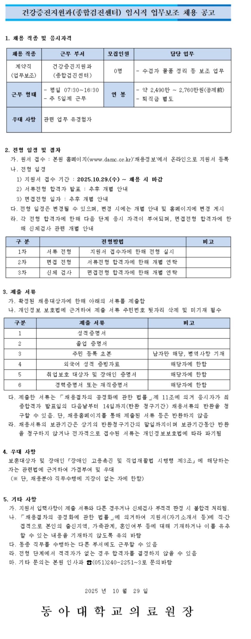 °Ç°ÁõÁøÁö¿ø°ú(Á¾ÇÕ°ËÁø¼¾ÅÍ) ÀÓ½ÃÁ÷ ¾÷¹«º¸Á¶ ä¿ë °ø°í