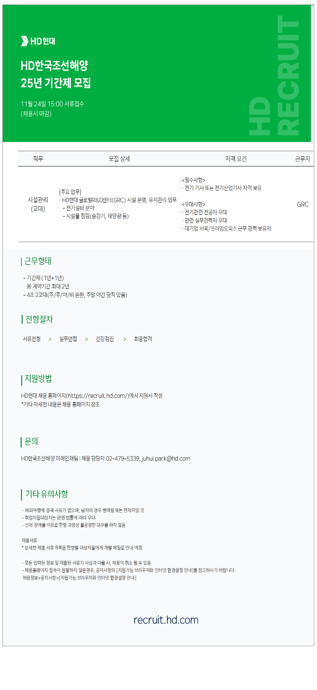 [HDÇѱ¹Á¶¼±Çؾç] ½Ã¼³°ü¸® ±â°£Á¦ ¸ðÁý