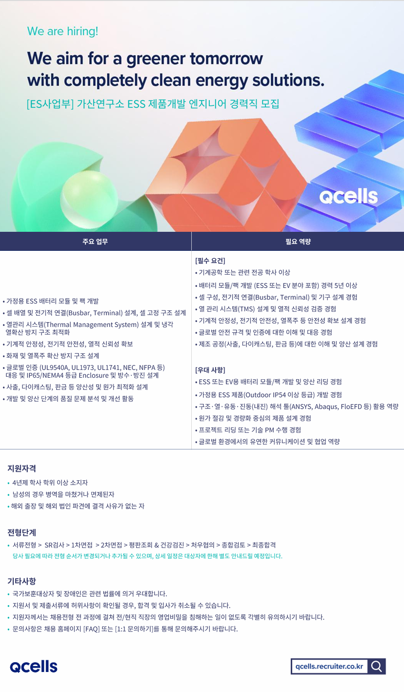 [ES»ç¾÷ºÎ] ESS Á¦Ç°°³¹ß ¿£Áö´Ï¾î °æ·Â»ç¿ø ä¿ë
