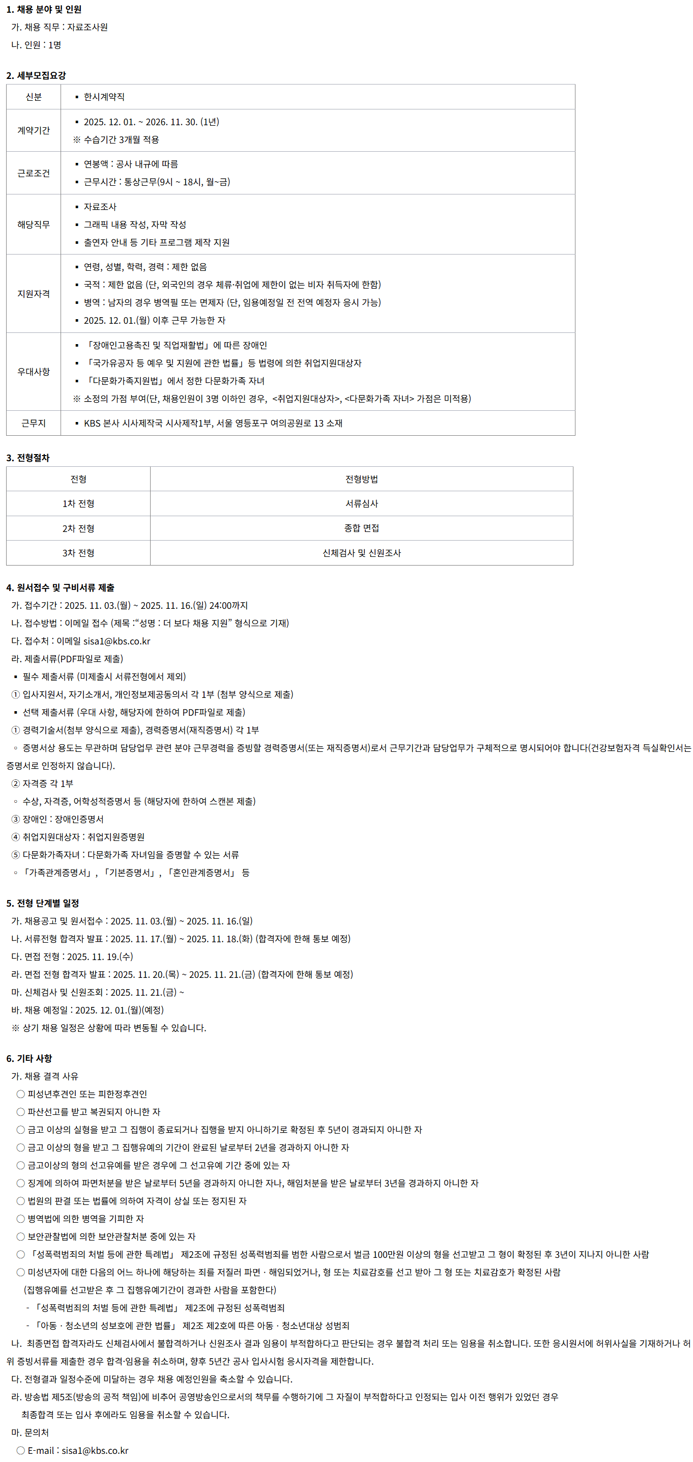 °¡. ä¿ë°ø°í ¹× ¿ø¼Á¢¼ö : 2025. 11. 03.(¿ù) ~ 2025. 11. 16.(ÀÏ)