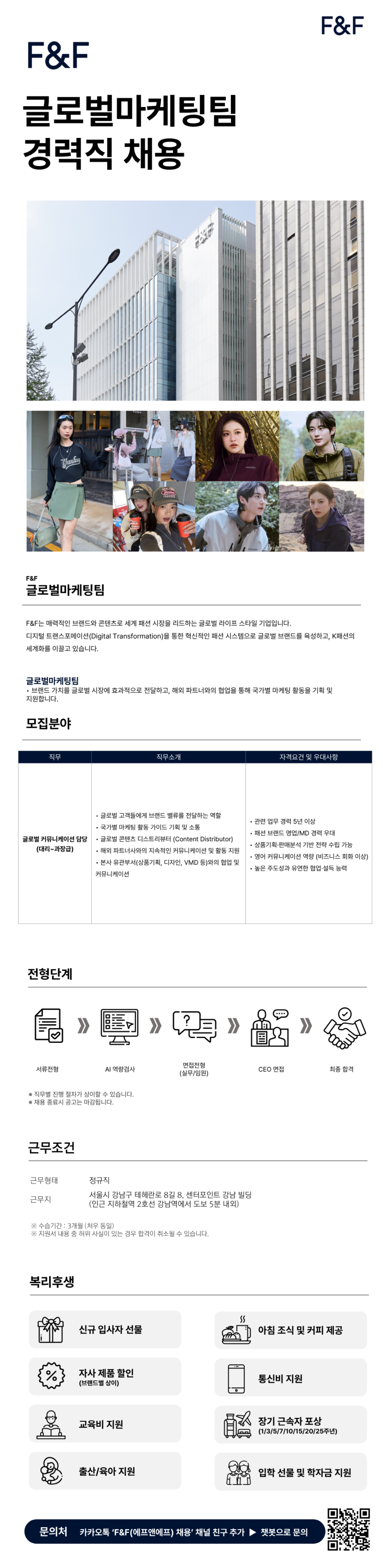 F&F ±Û·Î¹ú¸¶ÄÉÆÃÆÀ ±Û·Î¹ú Ä¿¹Â´ÏÄÉÀÌ¼Ç ´ã´ç °æ·ÂÁ÷ ä¿ë