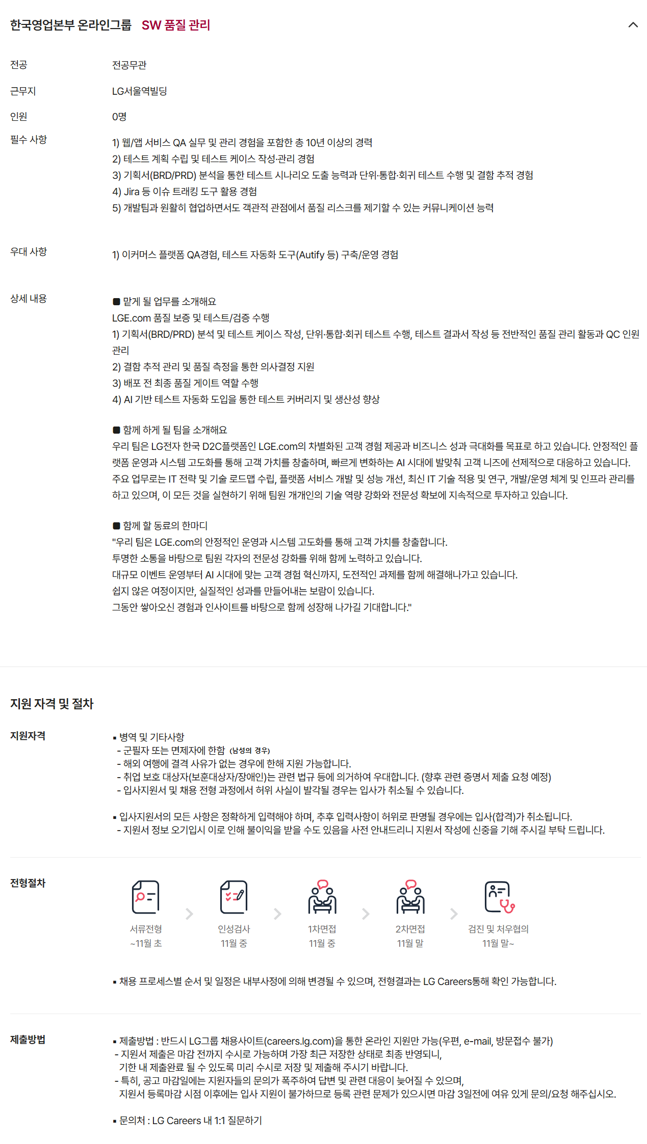 1) À¥/¾Û ¼ºñ½º QA ½Ç¹« ¹× °ü¸® °æÇèÀ» Æ÷ÇÔÇÑ ÃÑ 10³â ÀÌ»óÀÇ °æ·Â