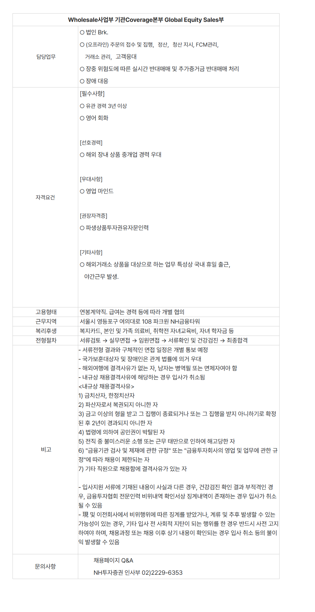 [°æ·ÂÁ÷ä¿ë]Wholesale»ç¾÷ºÎ ±â°üCoverageº»ºÎ Global Equity SalesºÎ