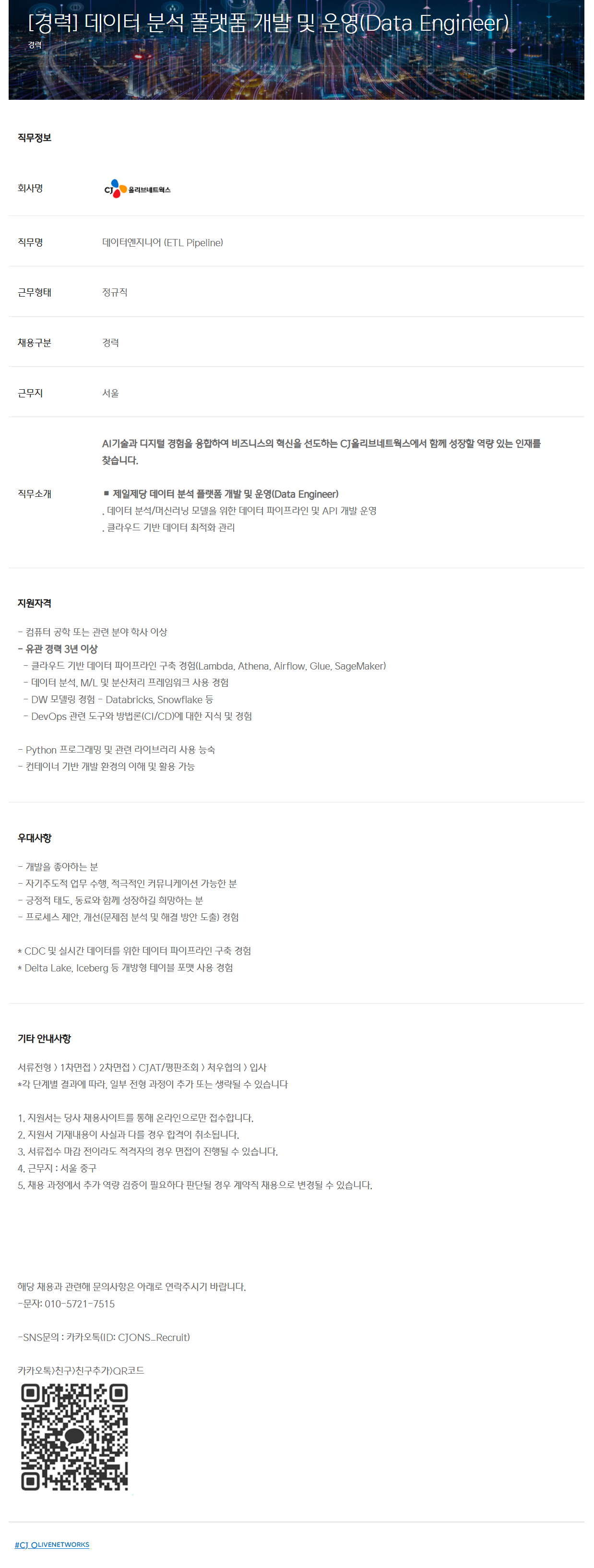 ◼︎ Á¦ÀÏÁ¦´ç µ¥ÀÌÅÍ ºÐ¼® Ç÷§Æû °³¹ß ¹× ¿î¿µ(Data Engineer)