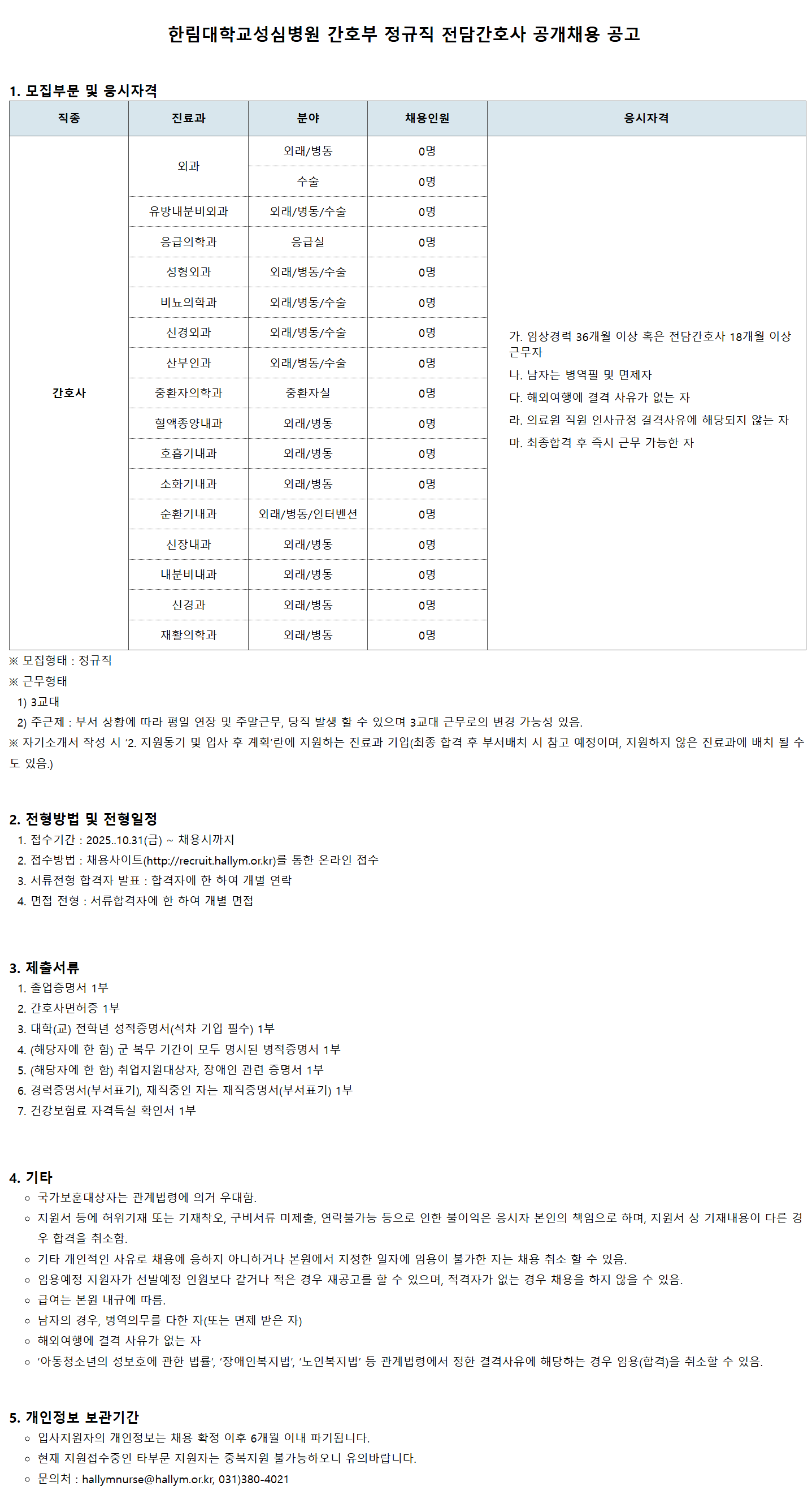 Á¢¼ö¹æ¹ý : ä¿ë»çÀÌÆ®(http://recruit.hallym.or.kr)¸¦ ÅëÇÑ ¿Â¶óÀÎ Á¢¼ö