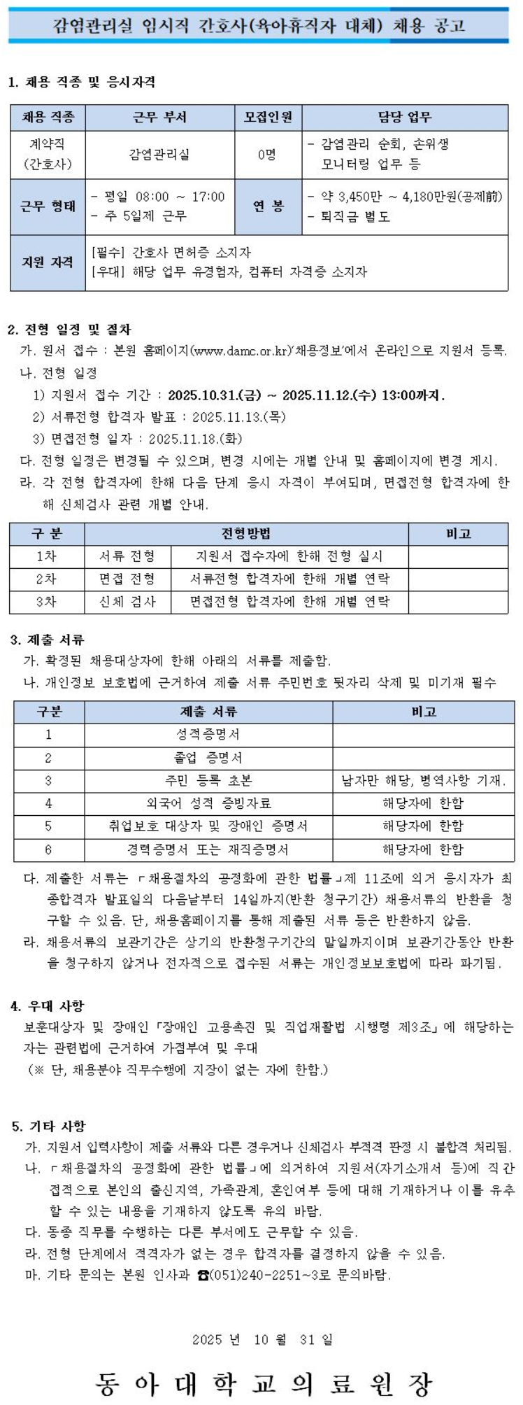 °¨¿°°ü¸®½Ç ÀÓ½ÃÁ÷ °£È£»ç(À°¾ÆÈÞÁ÷ÀÚ ´ëü) °ø°³Ã¤¿ë °ø°í