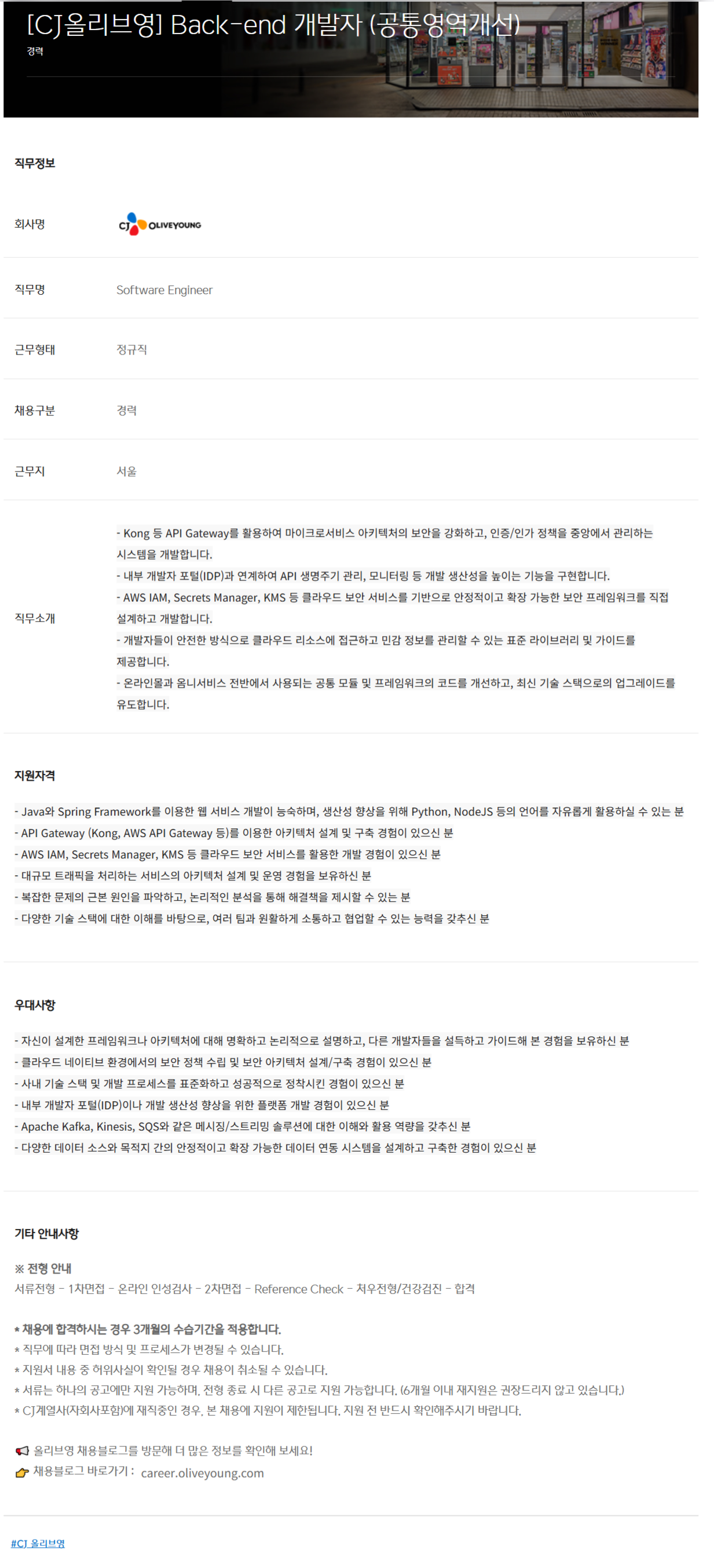 [CJ¿Ã¸®ºê¿µ] Back-end °³¹ßÀÚ (°øÅ뿵¿ª°³¼±)