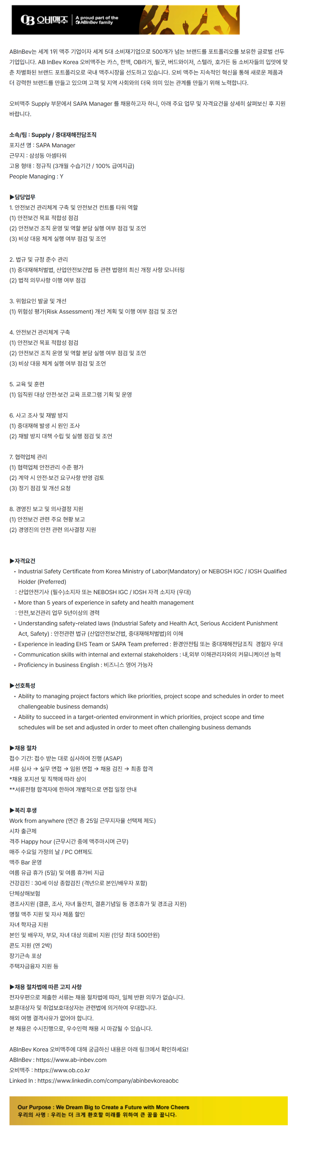 ¿Àºñ¸ÆÁÖ Supply ºÎ¹®¿¡¼ SAPA Manager ¸¦ ä¿ëÇϰíÀÚ ÇÏ´Ï, ¾Æ·¡ ÁÖ¿ä ¾÷¹« ¹× ÀÚ°Ý¿ä°ÇÀ» »ó¼¼È÷ »ìÆìº¸½Å ÈÄ Áö¿ø¹Ù¶ø´Ï´Ù.