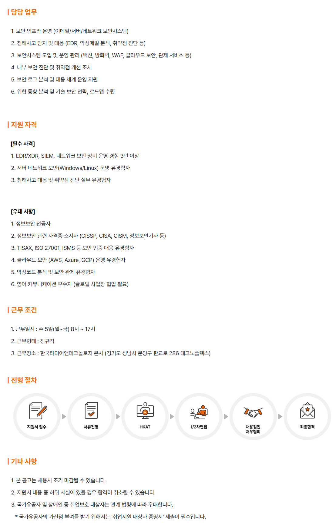 1. EDR/XDR, SIEM, ³×Æ®¿öÅ© º¸¾È Àåºñ ¿î¿µ °æÇè 3³â ÀÌ»ó