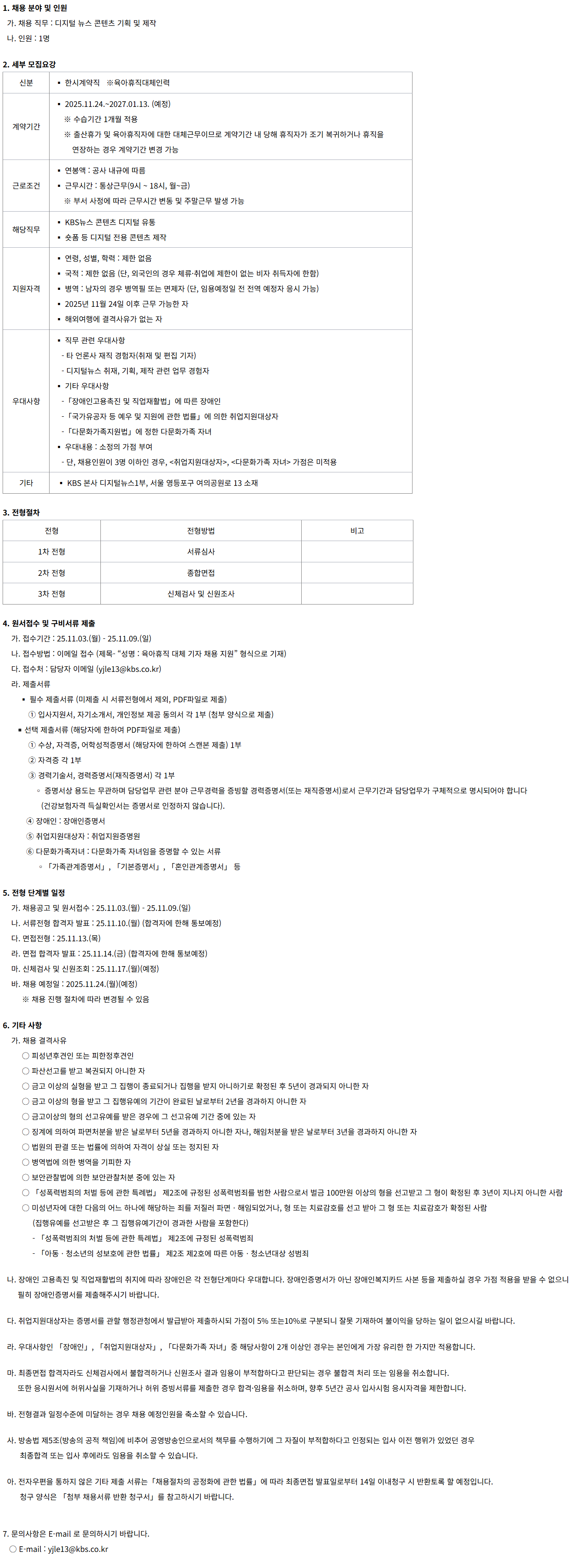 °¡. ä¿ë°ø°í ¹× ¿ø¼Á¢¼ö : 25.11.03.(¿ù) - 25.11.09.(ÀÏ)