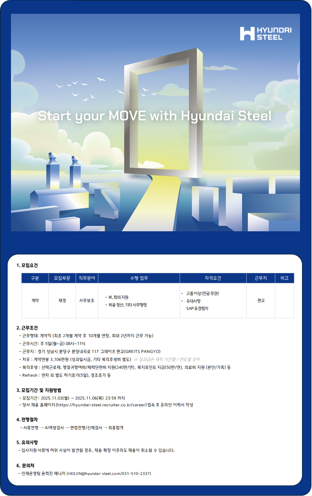 Çö´ëÁ¦Ã¶(ÁÖ) Àç°æ »ç¹«º¸Á¶ °è¾àÁ÷ ä¿ë(ÆÇ±³)