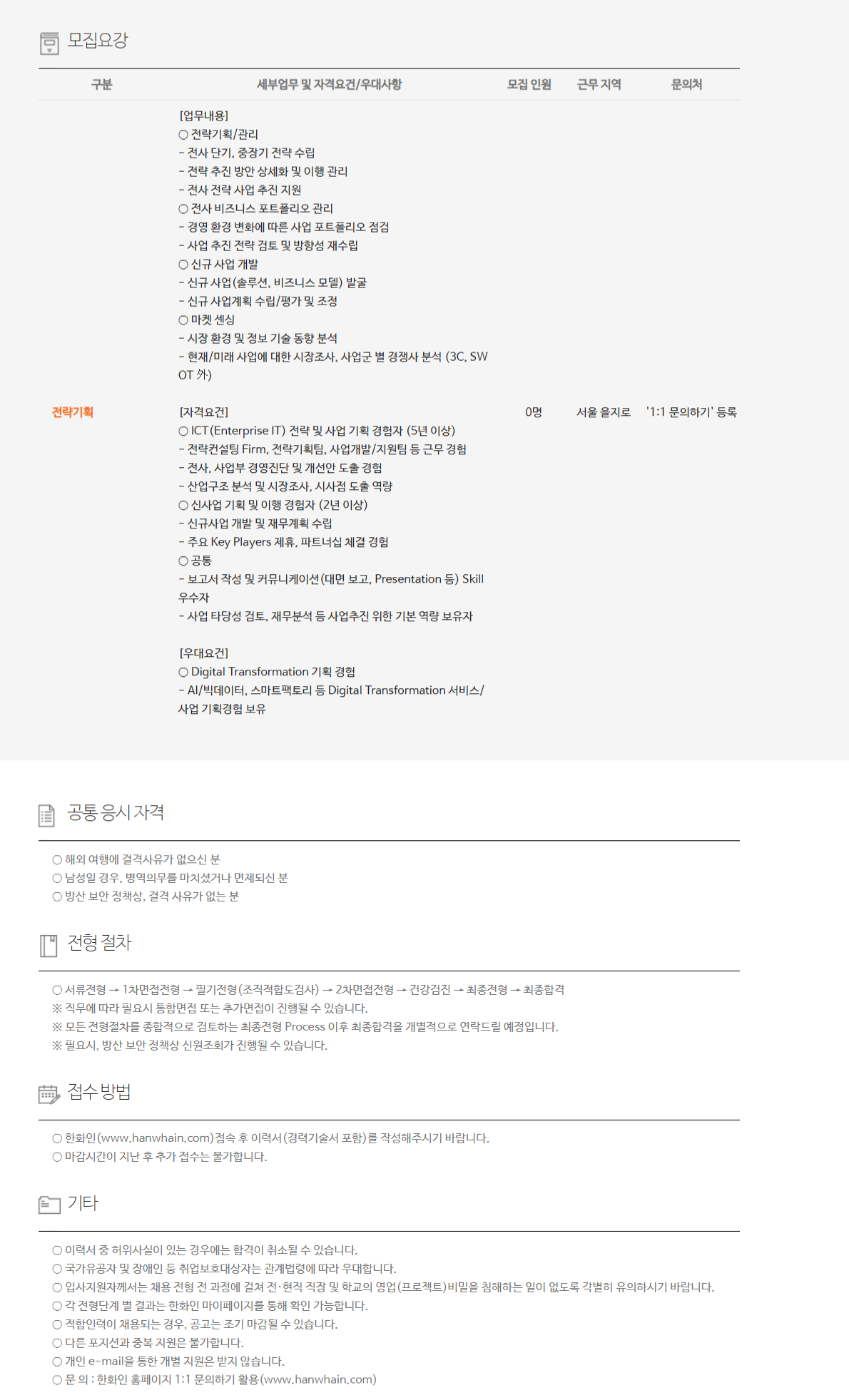 ÇÑȽýºÅÛ ICTºÎ¹® Àü·«±âȹ ´ã´çÀÚ °æ·Â»ç¿ø ä¿ë