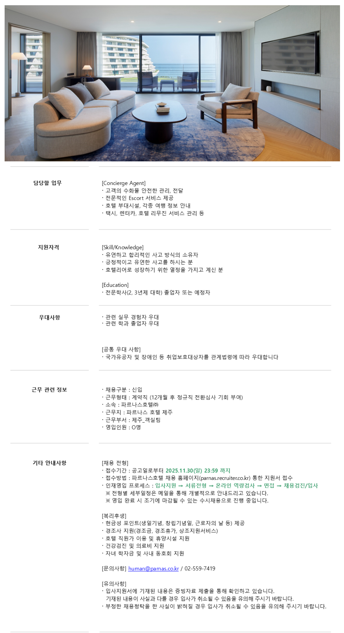 [Á¦ÁÖ] °´½Ç / Concierge Agent (½ÅÀÔ)