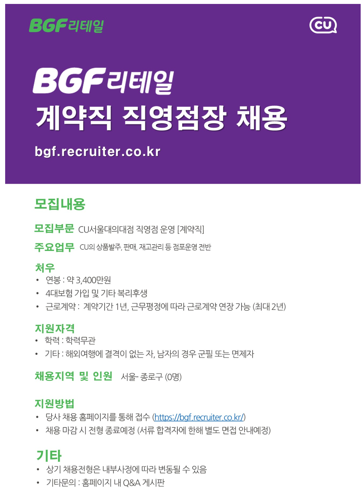 [BGF¸®Å×ÀÏ] 2025³â °è¾àÁ÷ Á÷¿µÁ¡Àå ä¿ë - ¼¿ï´ëÀÇ´ëÁ¡