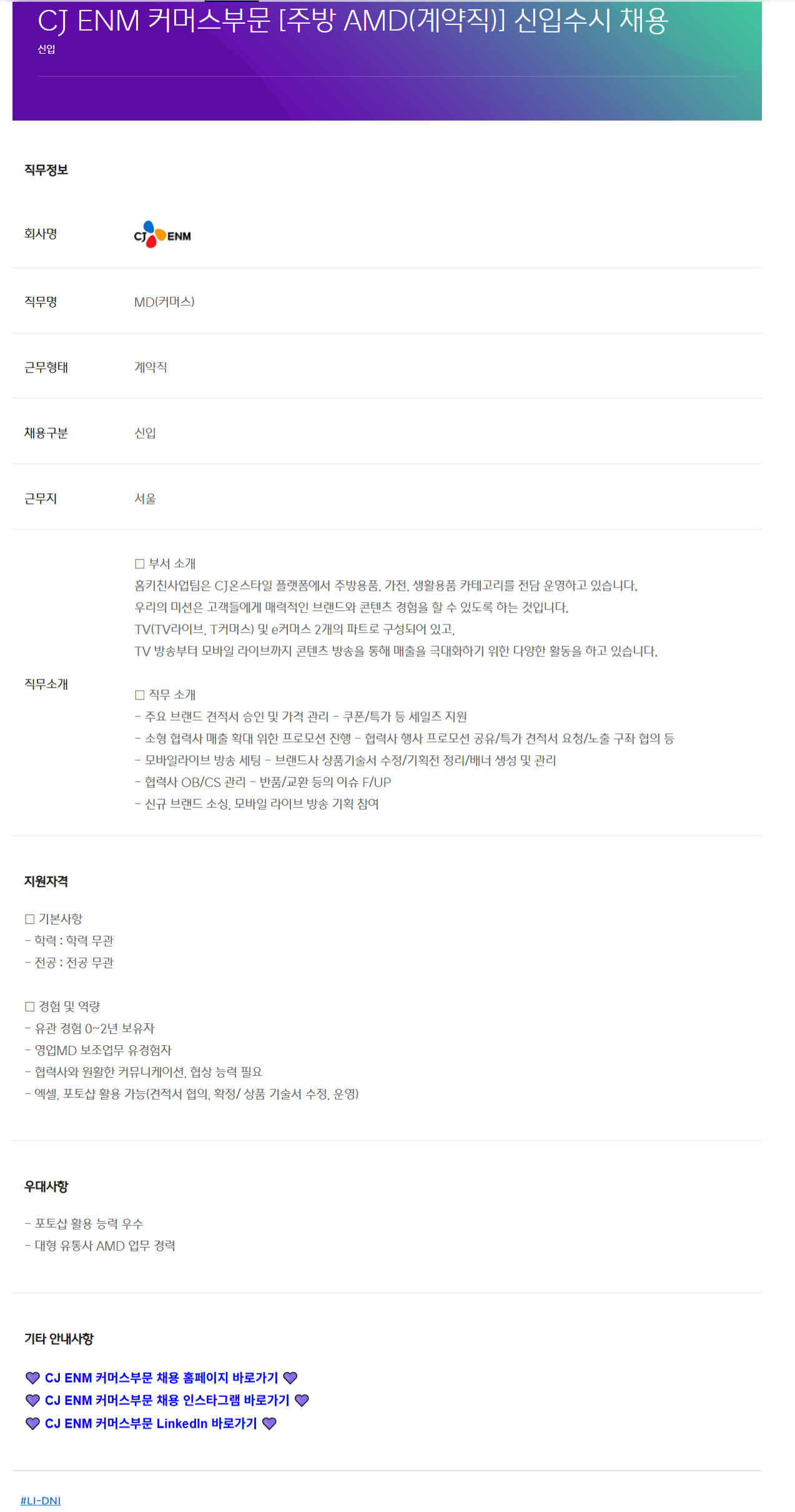 CJ ENM Ä¿¸Ó½ººÎ¹® [ÁÖ¹æ AMD(°è¾àÁ÷)] ½ÅÀÔ¼ö½Ã ä¿ë