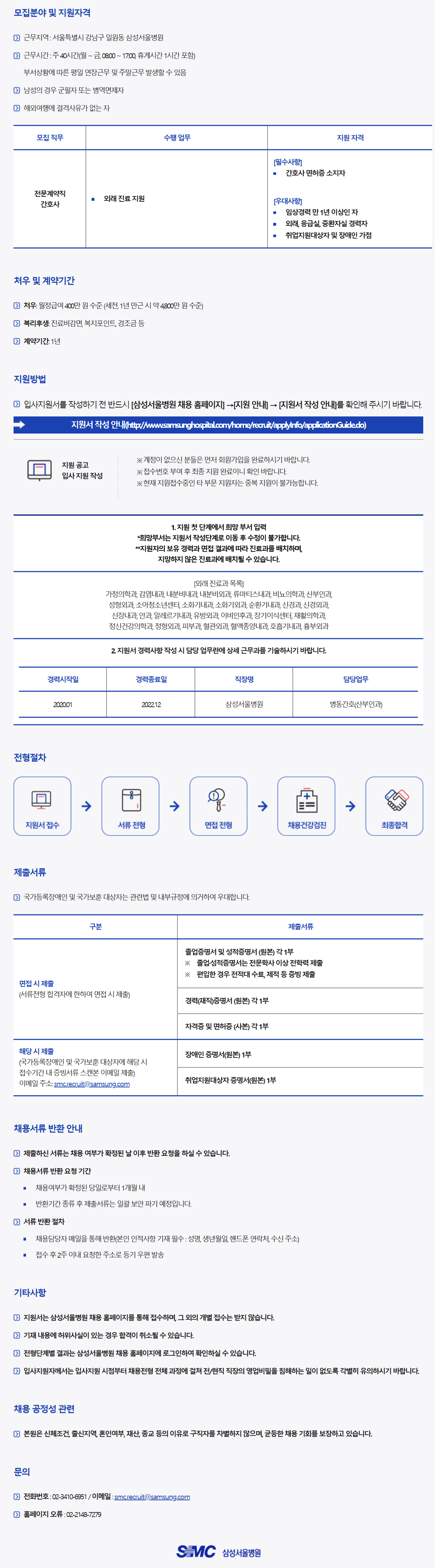 ¸ðÁý Á÷¹« ¼öÇà ¾÷¹« Áö¿ø ÀÚ°Ý Àü¹®°è¾àÁ÷ °£È£»ç ¿Ü·¡ Áø·á Áö¿ø [Çʼö»çÇ×] °£È£»ç ¸éÇãÁõ ¼ÒÁöÀÚ [¿ì´ë»çÇ×] ÀÓ»ó°æ·Â ¸¸ 1³â ÀÌ»óÀÎ ÀÚ ¿Ü·¡, ÀÀ±Þ½Ç, ÁßȯÀÚ½Ç °æ·ÂÀÚ Ãë¾÷Áö¿ø´ë»óÀÚ ¹× Àå¾ÖÀÎ °¡Á¡
