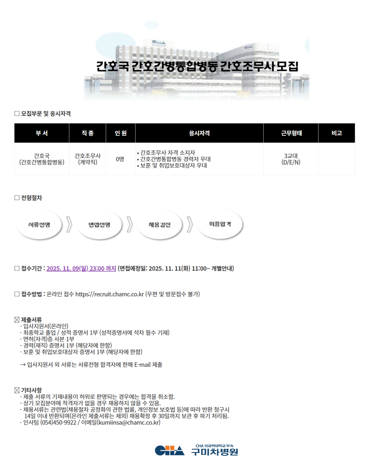 [±¸¹ÌÂ÷º´¿ø] °£È£°£º´ÅëÇÕº´µ¿ °£È£Á¶¹«»ç ¸ðÁý(°è¾àÁ÷)
