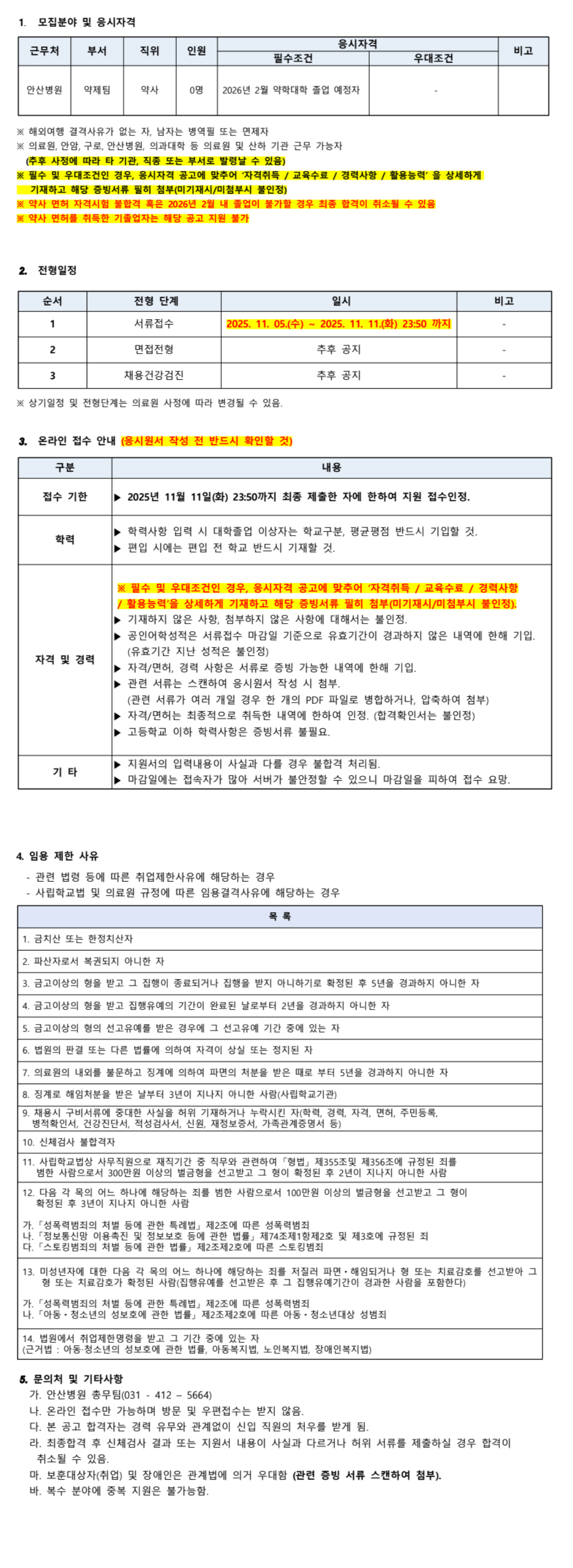 [¾È»êº´¿ø Á¤±ÔÁ÷ 25-22] 2026³â Á¹¾÷¿¹Á¤ ¾à»ç ¸ðÁý
