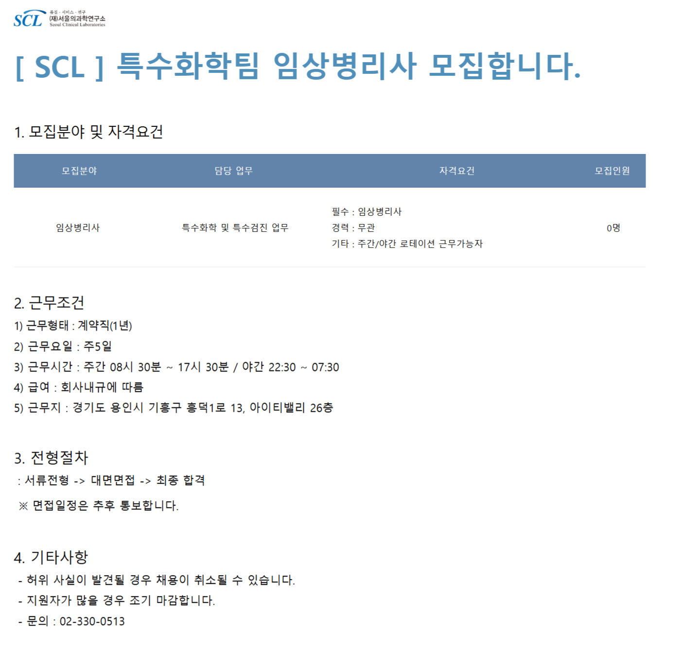 [SCL] Ư¼öºÐ¼®ÆÀ ÀÓ»óº´¸®»ç ¸ðÁýÇÕ´Ï´Ù.