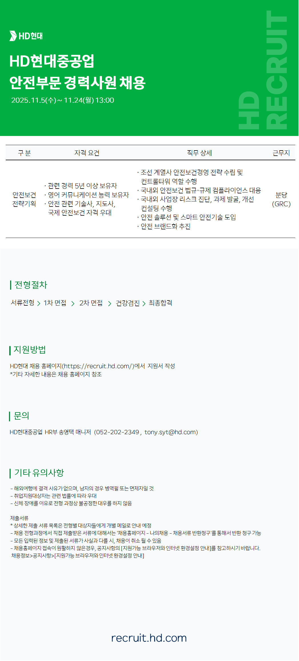 [HDÇö´ëÁß°ø¾÷] 2025³â ¾ÈÀüºÎ¹® °æ·Â»ç¿ø ä¿ë