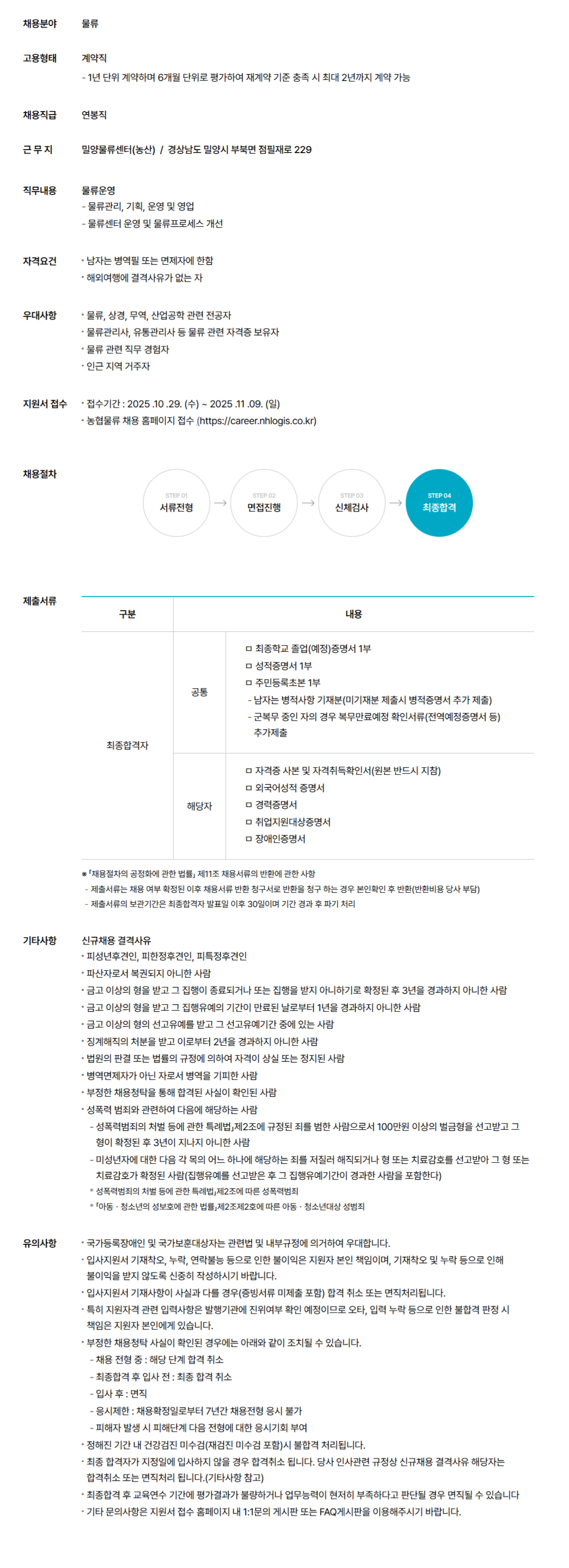 ³óÇù¹°·ù ä¿ë ȨÆäÀÌÁö Á¢¼ö (https://career.nhlogis.co.kr)