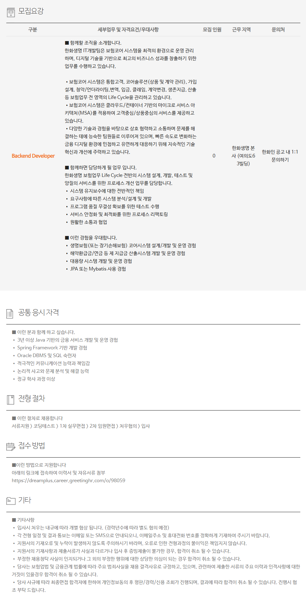 ÇÑÈ»ý¸í IT°³¹ßÆÀÀº º¸ÇèÄÚ¾î ½Ã½ºÅÛÀ» ÃÖÀûÀÇ È¯°æÀ¸·Î ¿î¿µ °ü¸®Çϸç, µðÁöÅÐ ±â¼úÀ» ±â¹ÝÀ¸·Î ÃÖ°íÀÇ ºñÁî´Ï½º ¼º°ú¸¦ âÃâÇϱâ À§ÇÑ ¾÷¹«¸¦ ¼öÇàÇϰí ÀÖ½À´Ï´Ù.