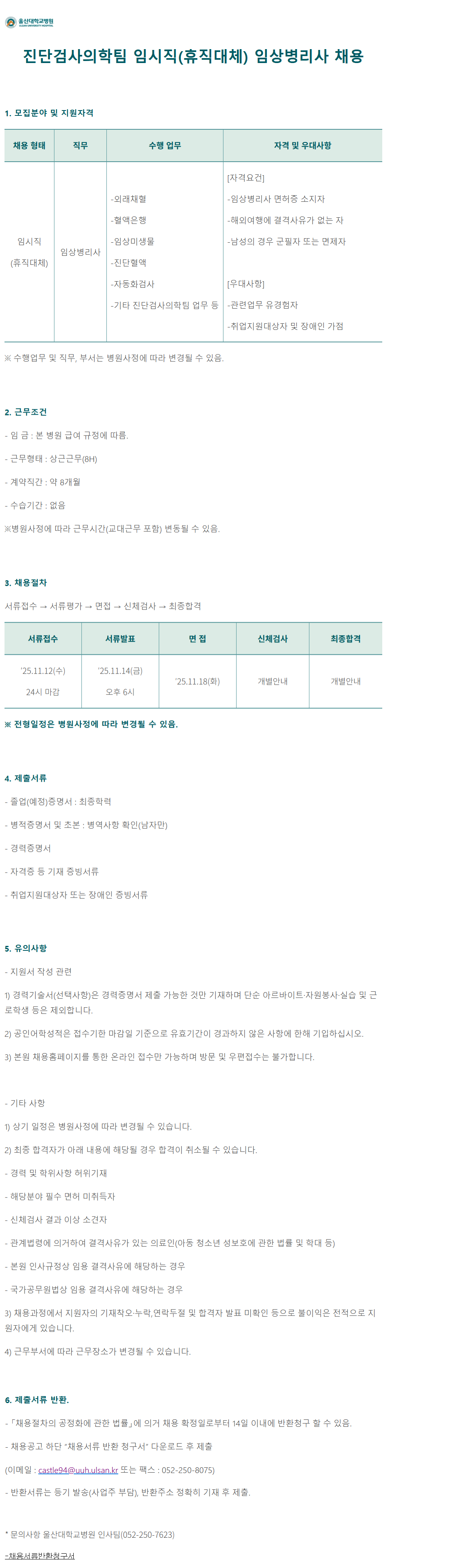Áø´Ü°Ë»çÀÇÇÐÆÀ ÀÓ½ÃÁ÷(ÈÞÁ÷´ëü) ÀÓ»óº´¸®»ç ä¿ë