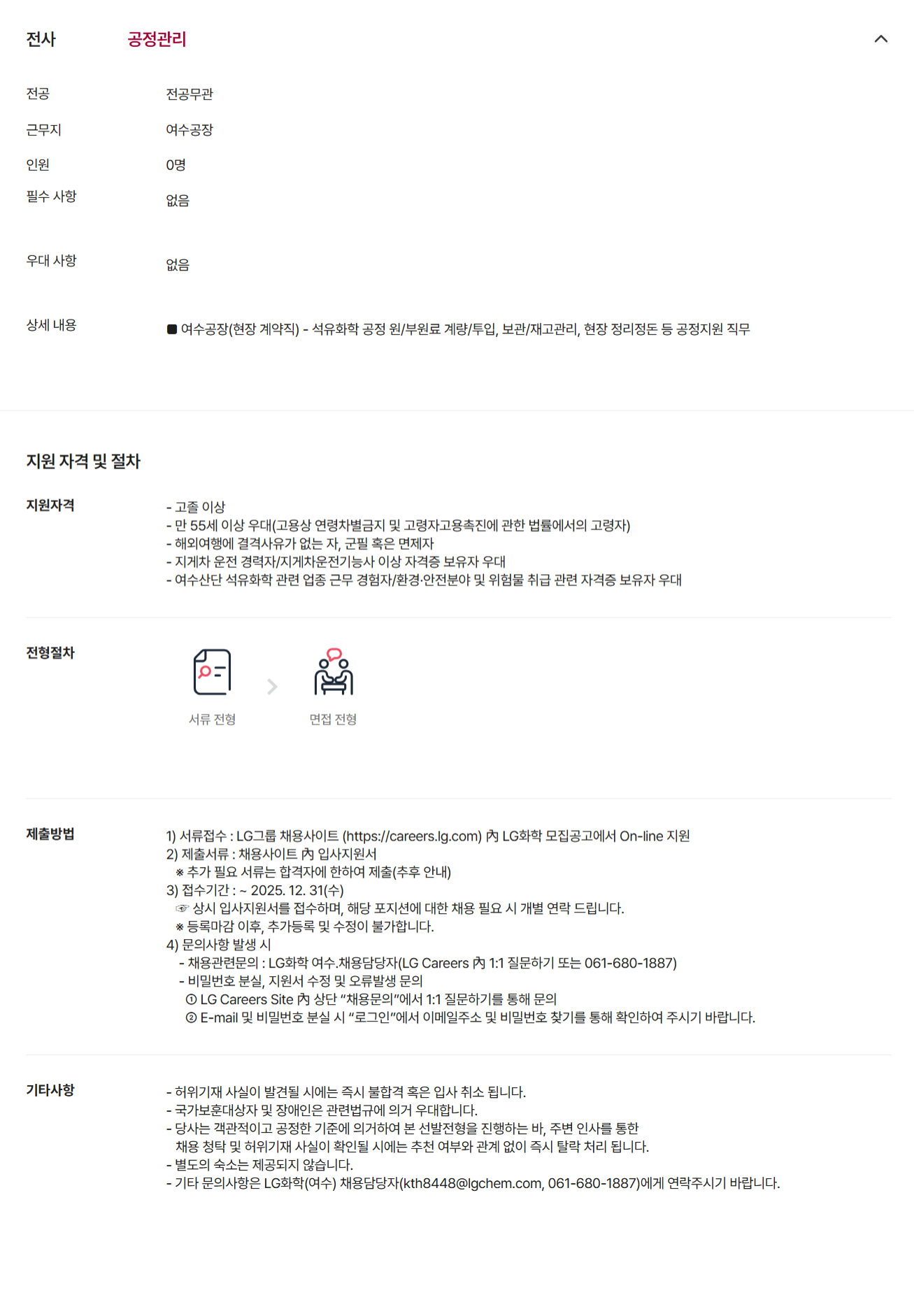 [»ó½ÃÁ¢¼ö]LGÈÇÐ ¿©¼ö°øÀå °øÁ¤Áö¿ø °è¾àÁ÷(ÇöÀå) ¸ðÁý