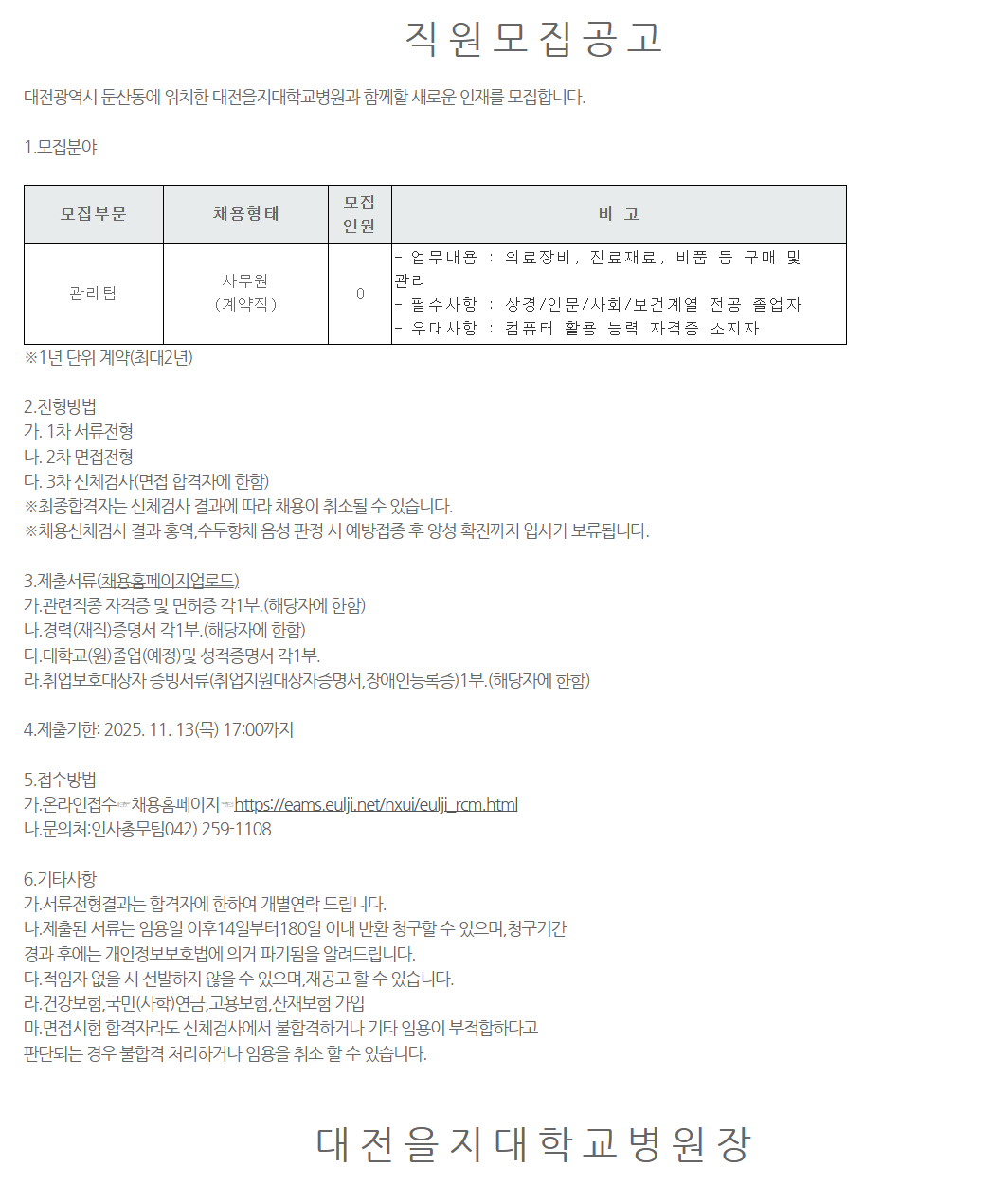 ´ëÀü±¤¿ª½Ã µÐ»êµ¿¿¡ À§Ä¡ÇÑ ´ëÀüÀ»Áö´ëÇб³º´¿ø°ú ÇÔ²²ÇÒ »õ·Î¿î ÀÎÀ縦 ¸ðÁýÇÕ´Ï´Ù.