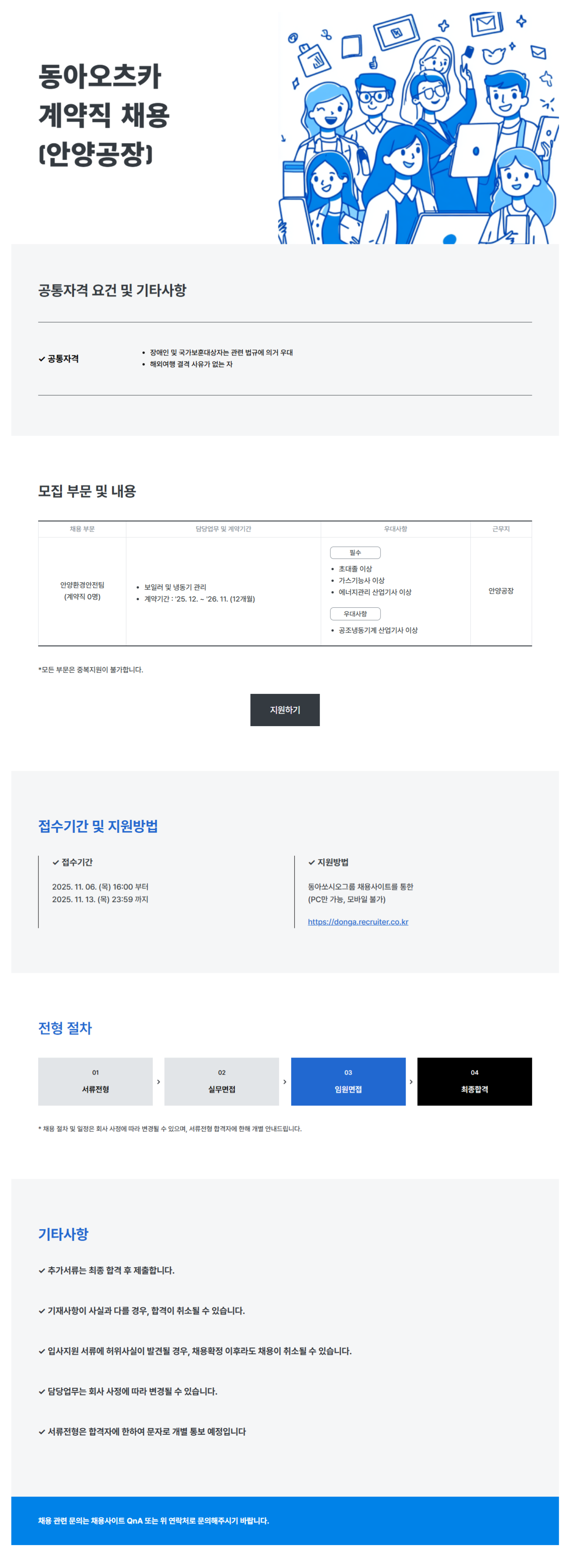µ¿¾Æ¿ÀÃ÷Ä« ¾È¾çȯ°æ¾ÈÀüÆÀ °è¾àÁ÷ ä¿ë (~11/13)