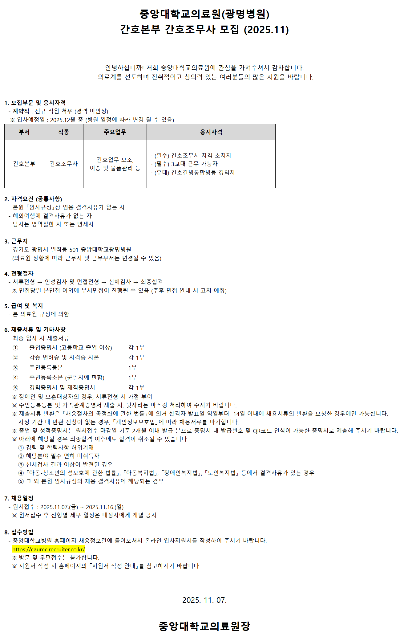 °£È£º»ºÎ °£È£Á¶¹«»ç ¸ðÁý (2025.11)
