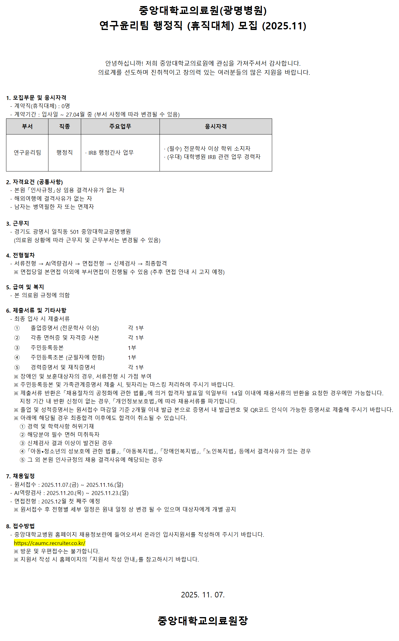 ¿¬±¸À±¸®ÆÀ ÇàÁ¤Á÷ (ÈÞÁ÷´ëü) ¸ðÁý (2025.11)