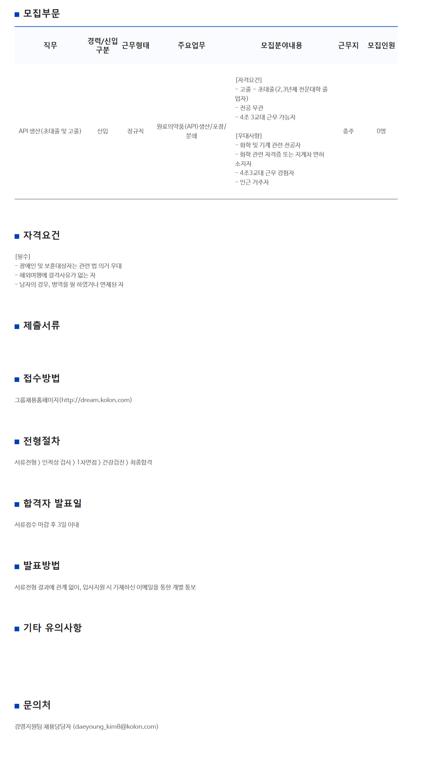 [ÄÚ¿À·Õ»ý¸í°úÇÐ(ÁÖ)] ÃæÁÖ°øÀå 11¿ù »ý»êÁ÷¹« ä¿ë(API »ý»ê)