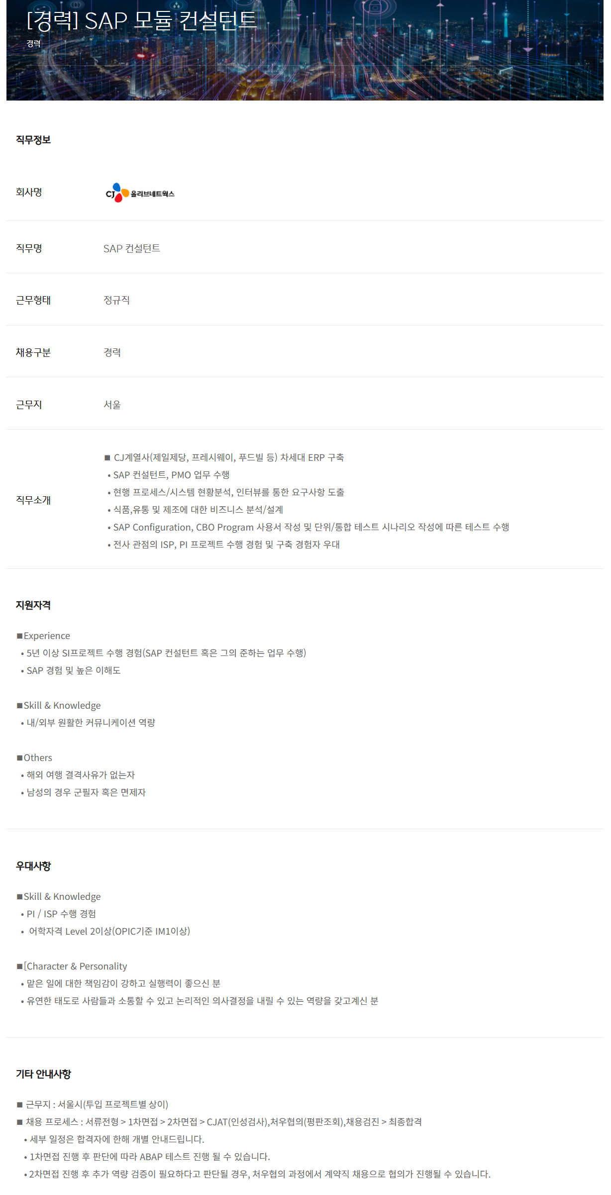 • 5³â ÀÌ»ó SIÇÁ·ÎÁ§Æ® ¼öÇà °æÇè(SAP ÄÁ¼³ÅÏÆ® ȤÀº ±×ÀÇ ÁØÇÏ´Â ¾÷¹« ¼öÇà)