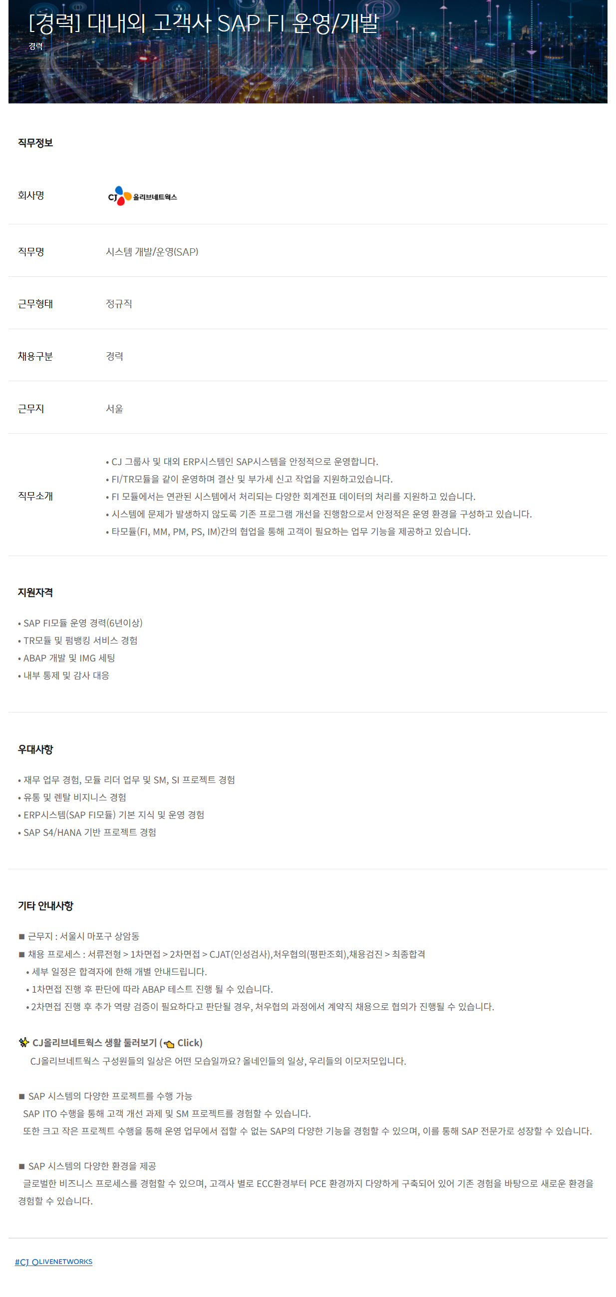 • CJ ±×·ì»ç ¹× ´ë¿Ü ERP½Ã½ºÅÛÀÎ SAP½Ã½ºÅÛÀ» ¾ÈÁ¤ÀûÀ¸·Î ¿î¿µÇÕ´Ï´Ù.