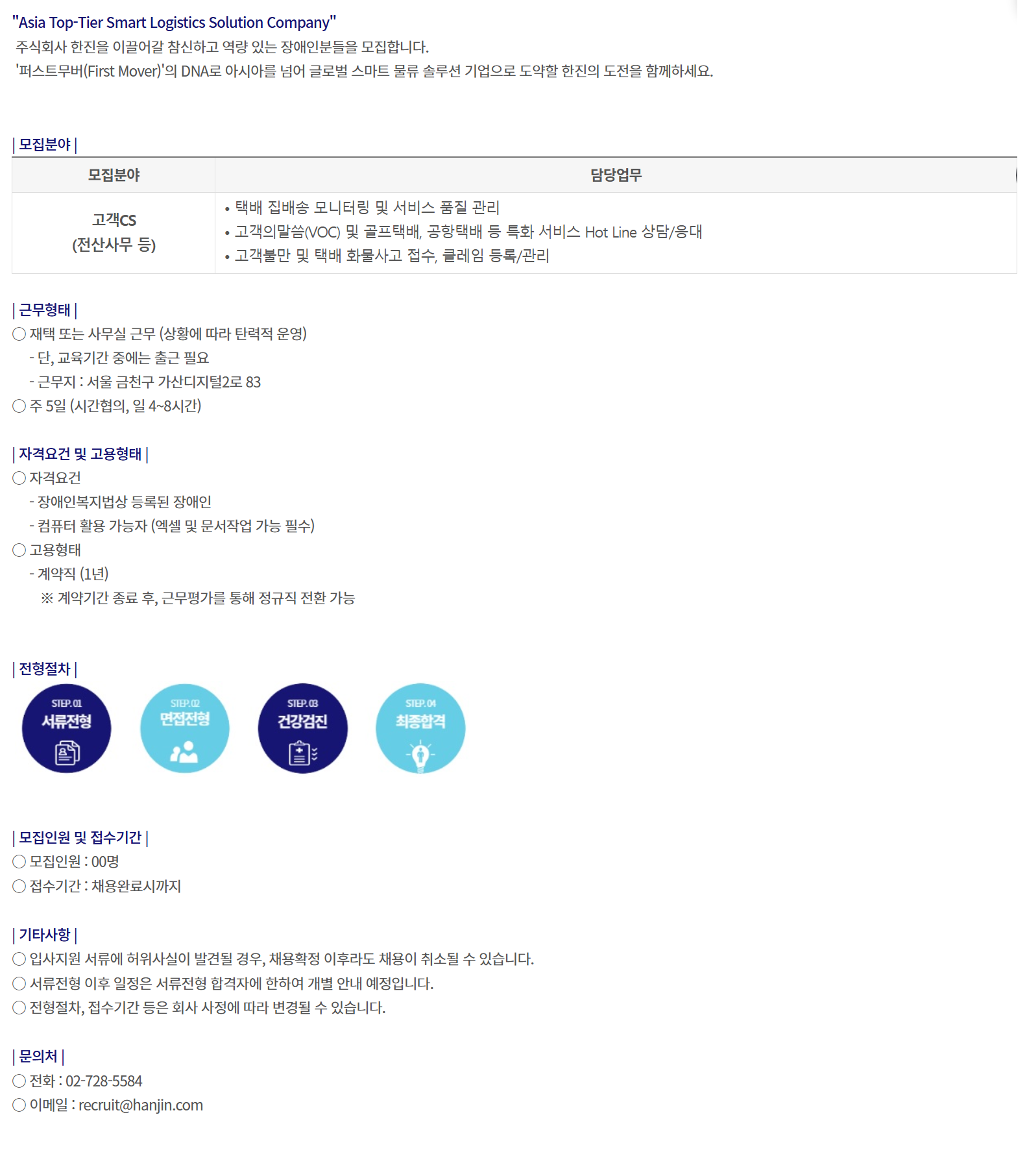 ÁÖ½Äȸ»ç ÇÑÁøÀ» À̲ø¾î°¥ Âü½ÅÇÏ°í ¿ª·® ÀÖ´Â Àå¾ÖÀκеéÀ» ¸ðÁýÇÕ´Ï´Ù.