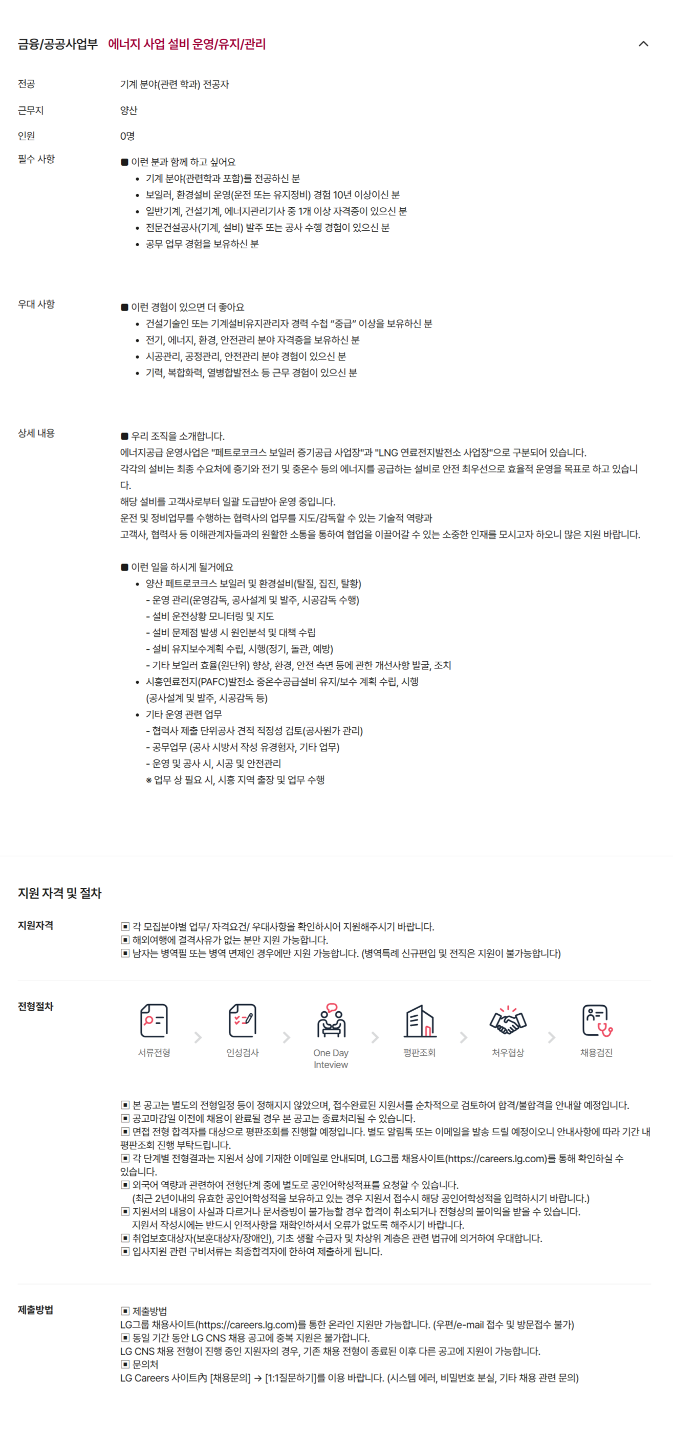 [LG CNS] ¿¡³ÊÁö »ç¾÷ ¼³ºñ ¿î¿µ ¹× À¯Áö/°ü¸® Àü¹®°¡ ¸ðÁý(°æ·Â)