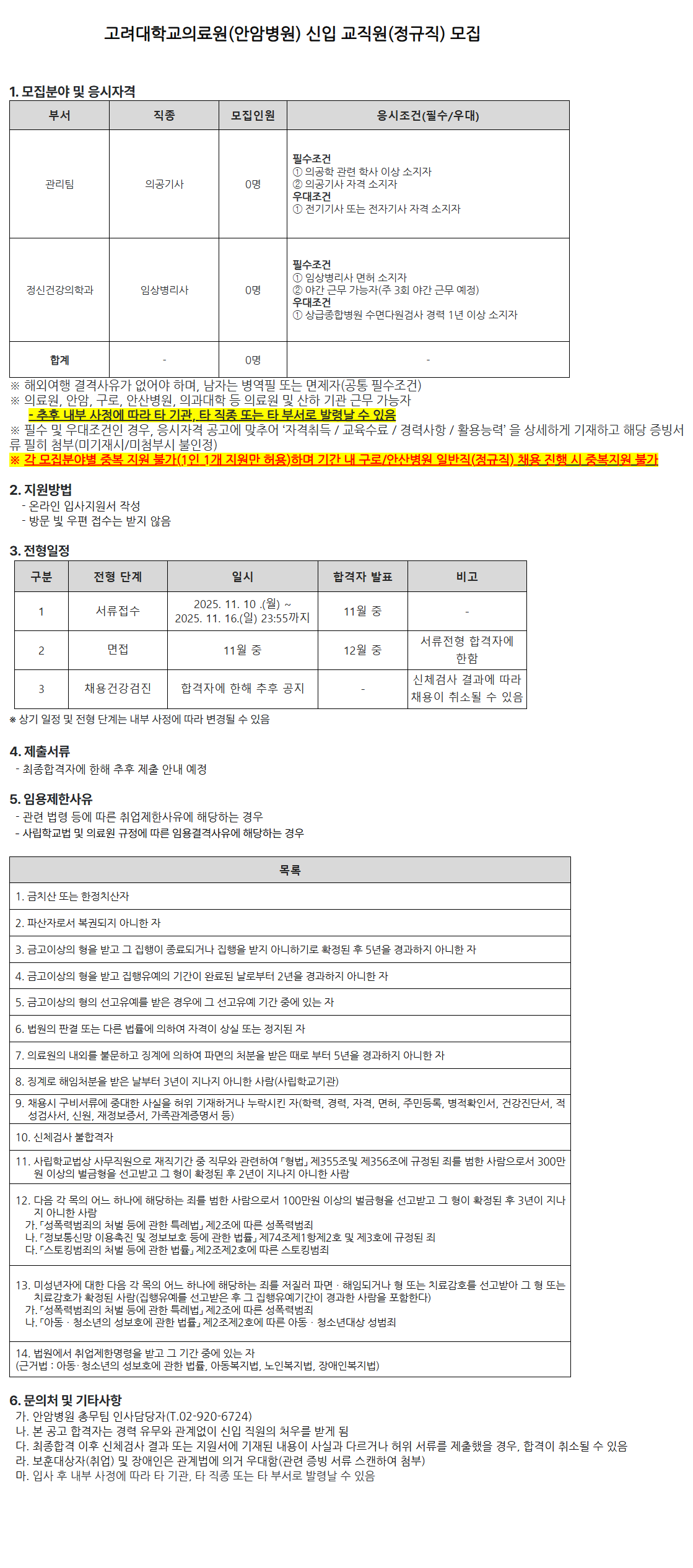 °í·Á´ëÇб³ÀÇ·á¿ø(¾È¾Ïº´¿ø) ½ÅÀÔ ±³Á÷¿ø(Á¤±ÔÁ÷) ¸ðÁý
